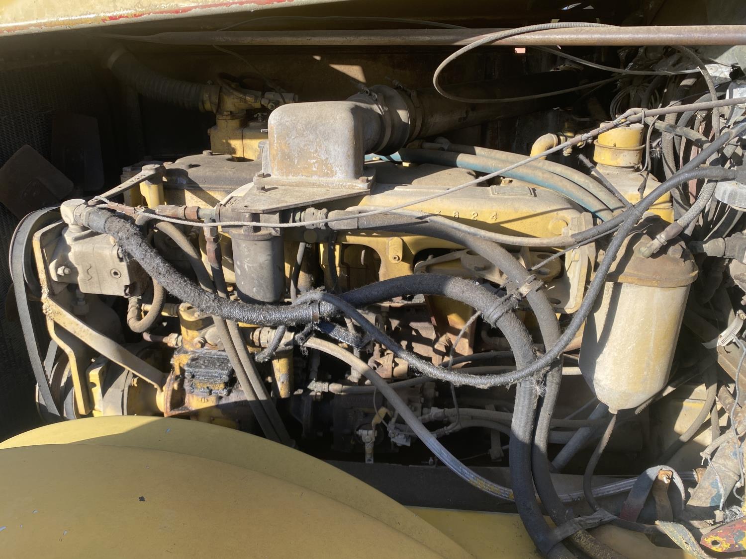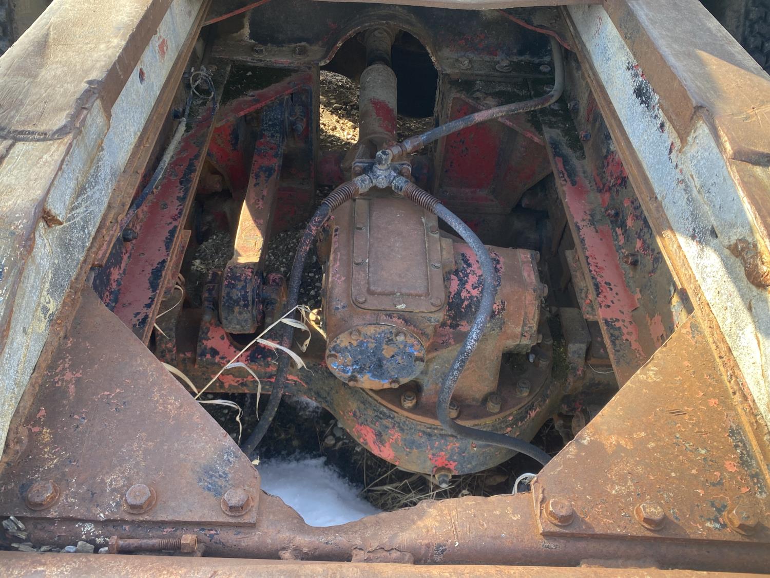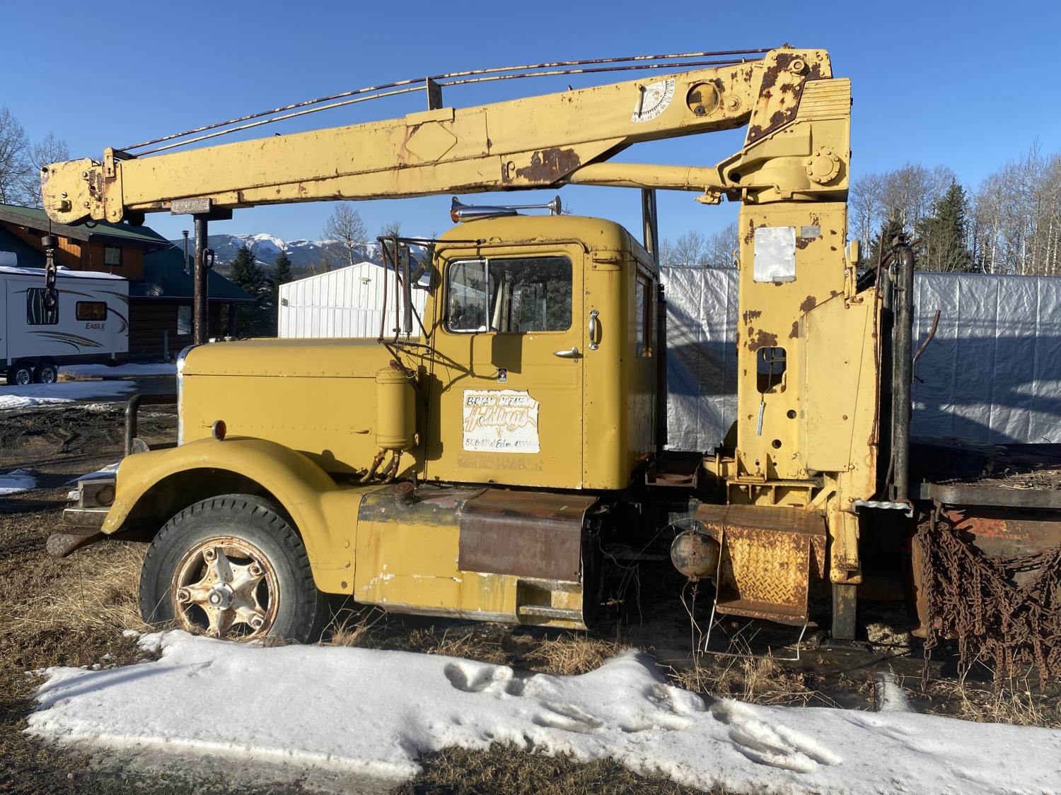 Cummins 6 cylinder diesel engine, 5 & 4 20 speed manual transmission, Pitman TL-100 straight boom front mount crane, spring suspension