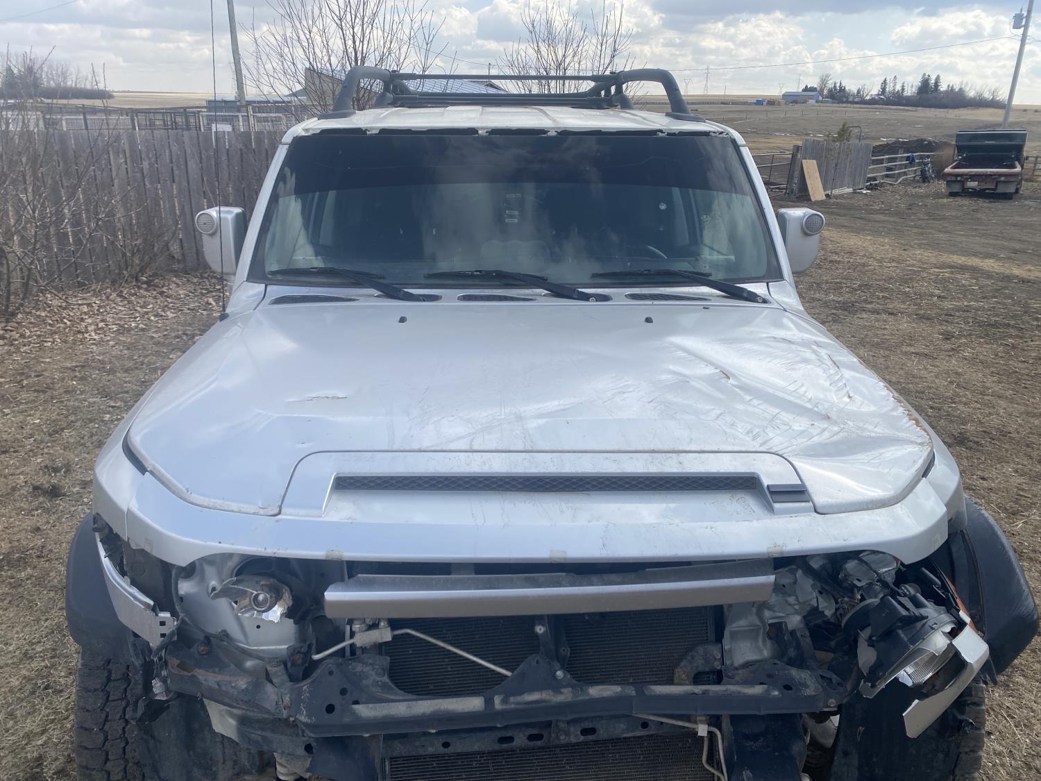 4.0 Litre , 4 cylinder, gas, automatic transmission, P/W, P/L, A/C, DVD player, upgraded stereo, 2" reciever hitch, Front end & hood damage, (Active Status), P265/70R17 tires