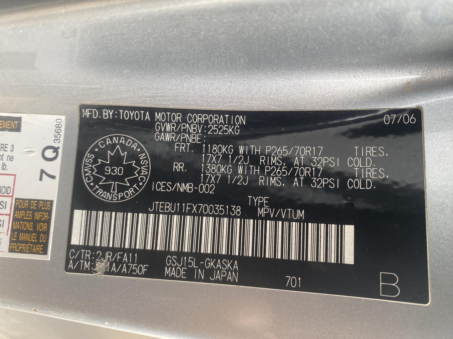 - JTEBU11FX70035138
