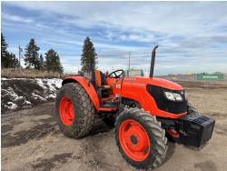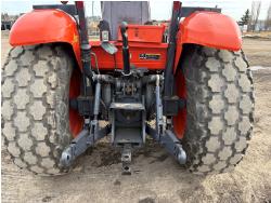 Kubota diesel engine, 67 PTO HP, 6 speed Hydraulic Shuttle partial power shift transmission, open station platform, left hand reverser, 540 PTO, 3 point hitch, 9.5-24 front tires, 18.4-26 rear tires, Front Wheel Assist