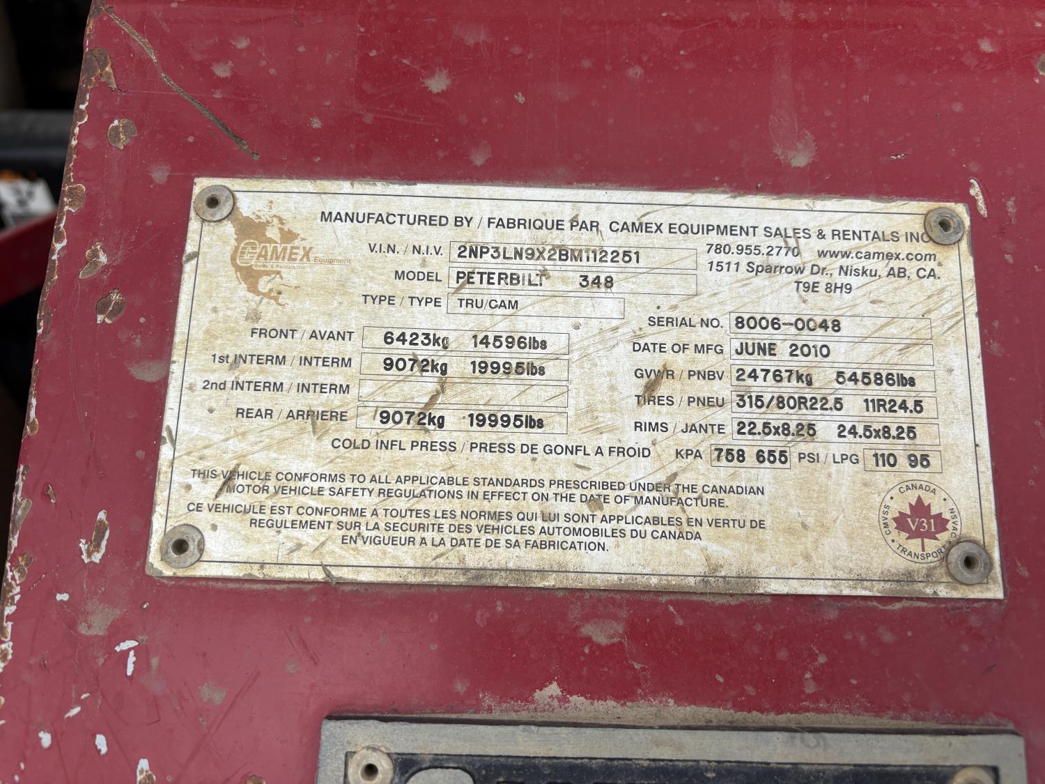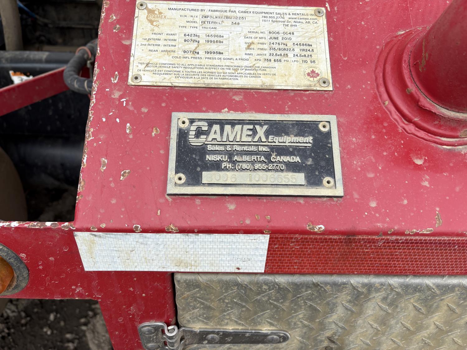 Paccar PX-8 6 cylinder diesel engine, DEF required, engine brake, engine block heater, 3500-RDS-P automatic transmission, bunk beds, A/C, cruise control, air ride driver seat, 2-way radio, air ride cab, Bowie hydraulic pump, Camex 8000 liter steel tank, Munchie air shift PTO, 1728 hrs, Enclosed pump box w/ heater, 14,596 lb front axle, 39,990 lb rear axles, full lockers, 5.57 ratio, all aluminum wheels, 315/80R22.5 front tires, 11R22.5 rear tires