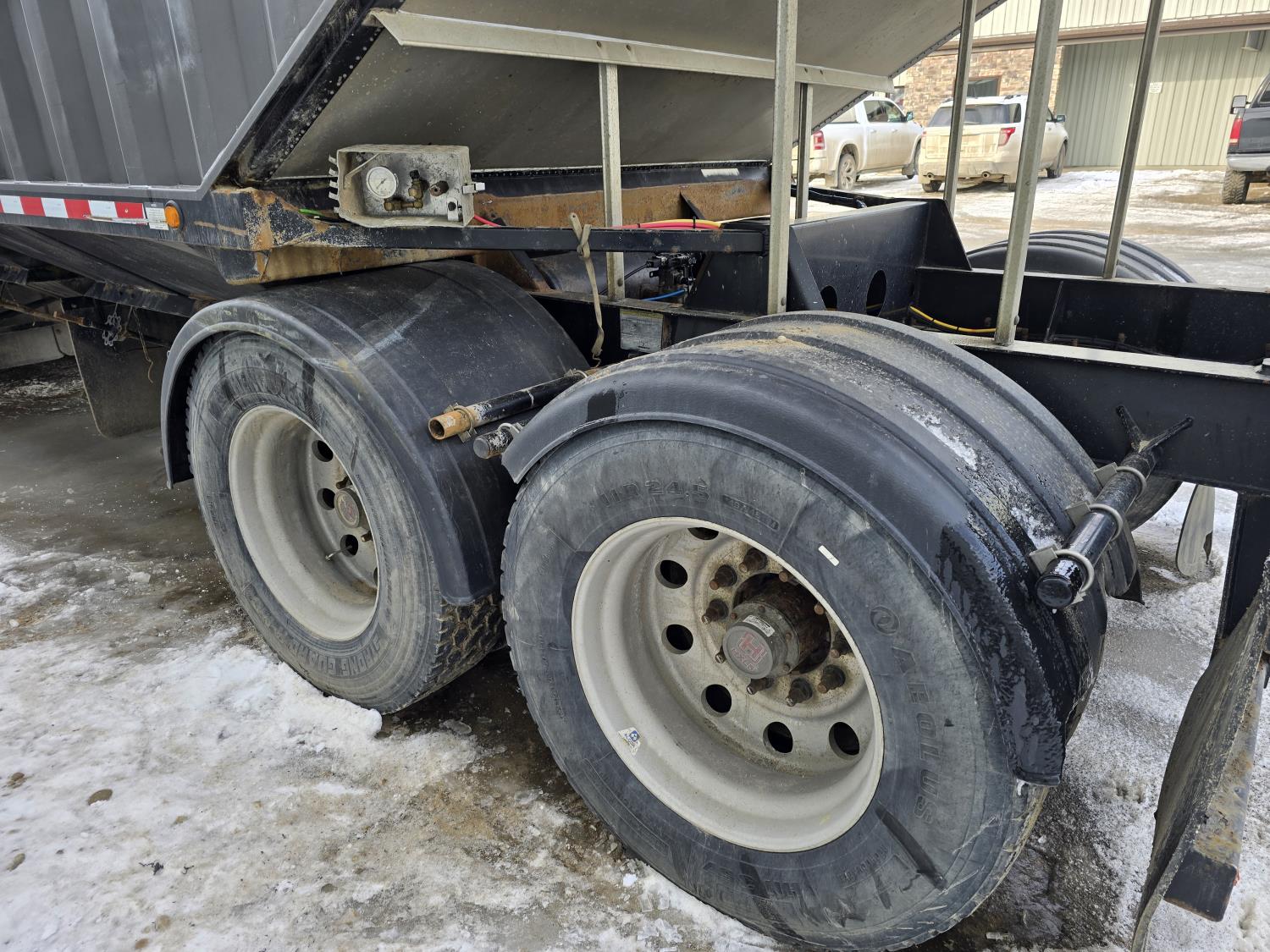 air scales, air ride suspension, dual hopper openers, roll tarps, aluminum wheels, 11R24.5 tires