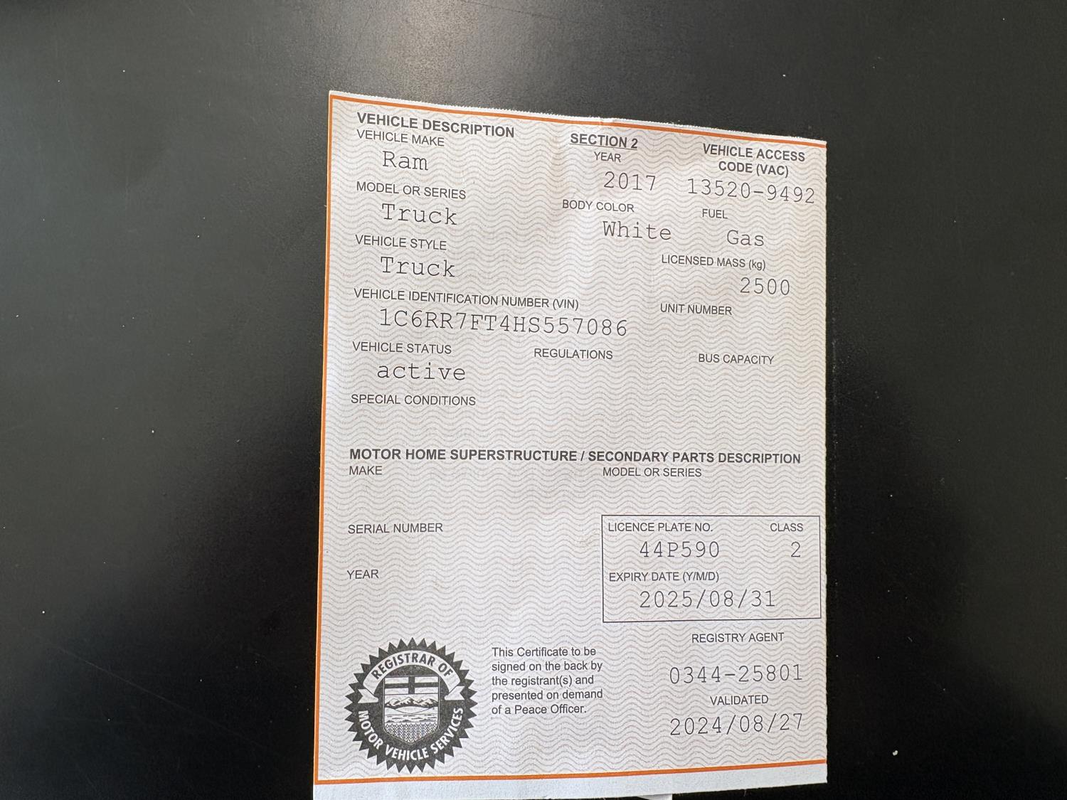 Copy of registration on hand.