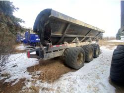 40 Ton/36 yard capacity, Tri axle design w/self steer rear axle, 6 hydraulic drum brakes, 50,000 lb rated hub & spindle, 360 degree rollover hitch, ag hitch, Alliance 750/45R26.5 floater tires, rear trailer connects to main lead trailer for full hydraulic & electrical, rear bumper push plate
