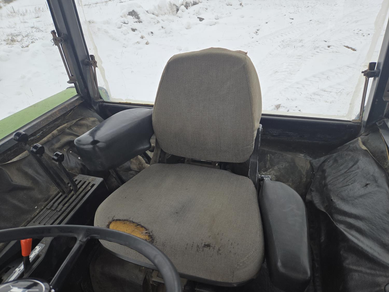 John Deere 6.6 L 6 cylinder diesel engine, 150 PTO HP, 8 speed manual transmission, cab, A/C, 1000 PTO, 3 rear hydraulic outlets, 11.00-16.5 front tires, 18.4-38 rear tires, factory duals, operators and parts manual