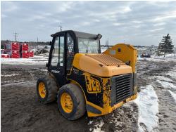 Enclosed cab, JCB 62hp diesel engine, manual coupler, 1 auxiliary hydraulics, 8' max height, side boom, side entry cab