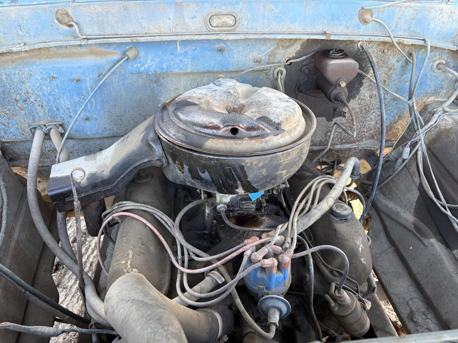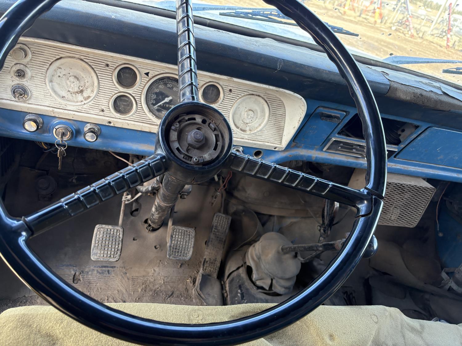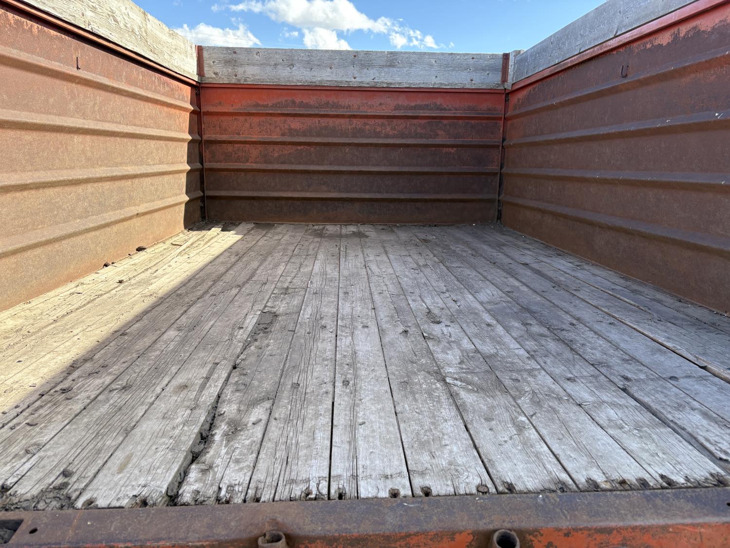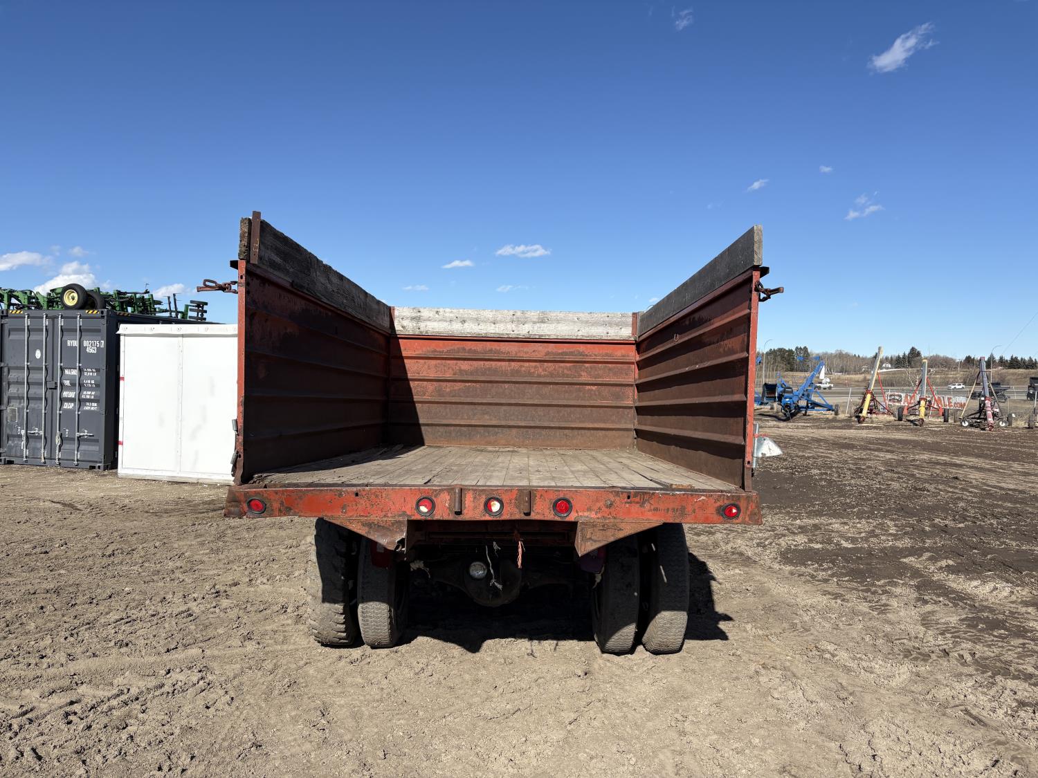 300 V8 engine, 5 speed manual transmission, woodbox size 140"x 90"x 48" sides, 8.25-20 tires
