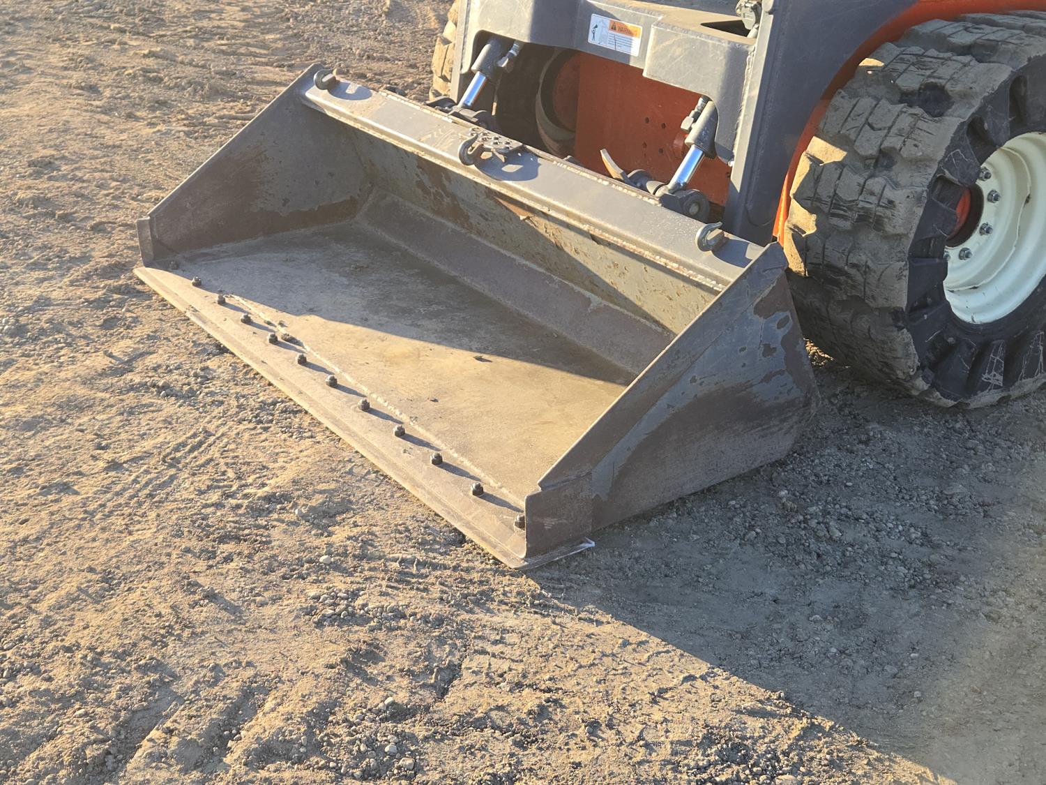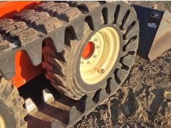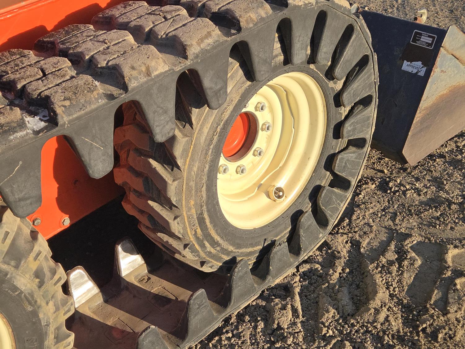 Enclosed cab, Kubota 4 cyl 60 HP diesel engine, foot & lever control, 72 inch smooth bucket, manual coupler, 1 auxiliary hydraulics, block heater, 13" rubber removeable tracks, 10-16.5 tires