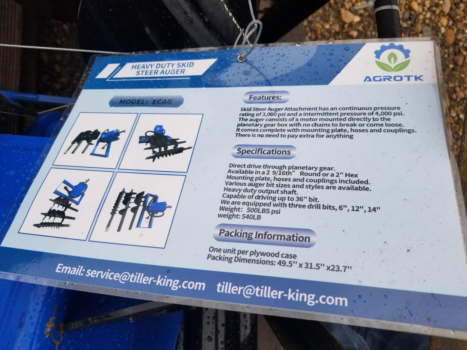 213 2024 Mower King SSECAG-Y Skid Steer Auger (Unused)