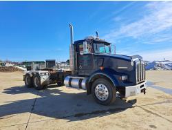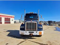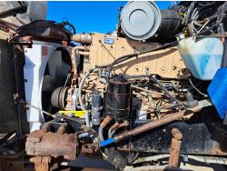 Cummins 444 14.0 L 6 cylinder diesel engine, engine brake, Eaton FULLER 13 speed manual transmission, radio, rubber block suspension, 13,200 lb front axle, 46,000 lb rear axles, diff lock, 232 inch WB, 11R24.5 tires