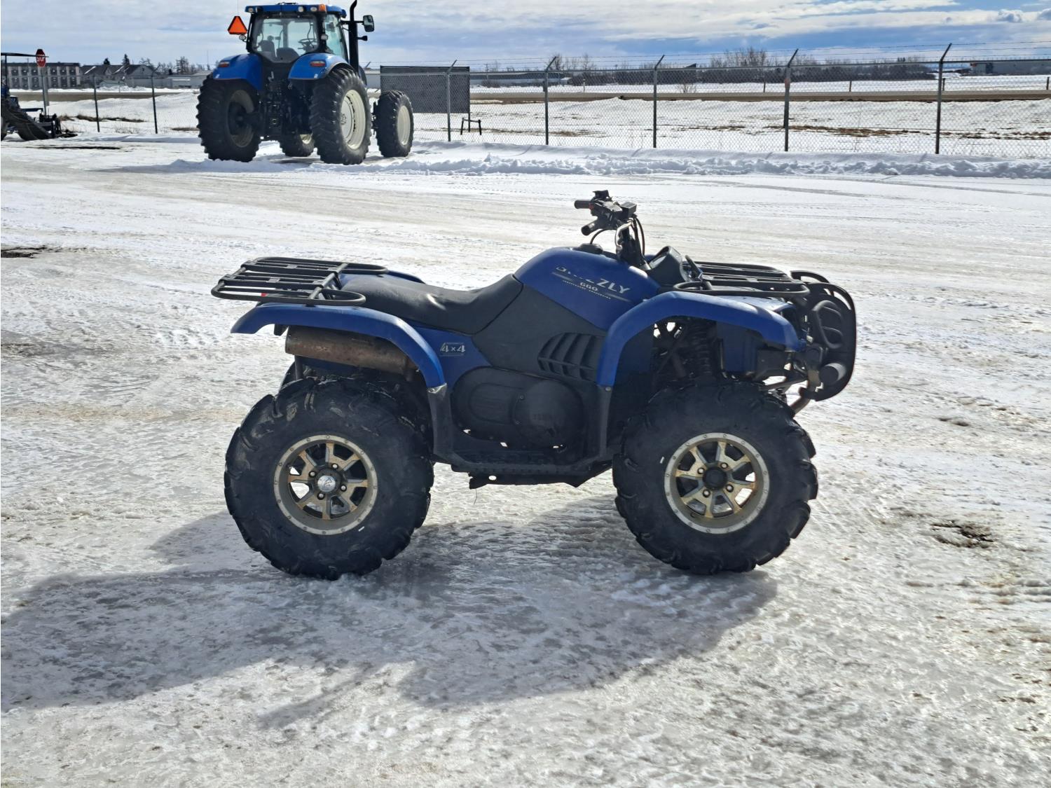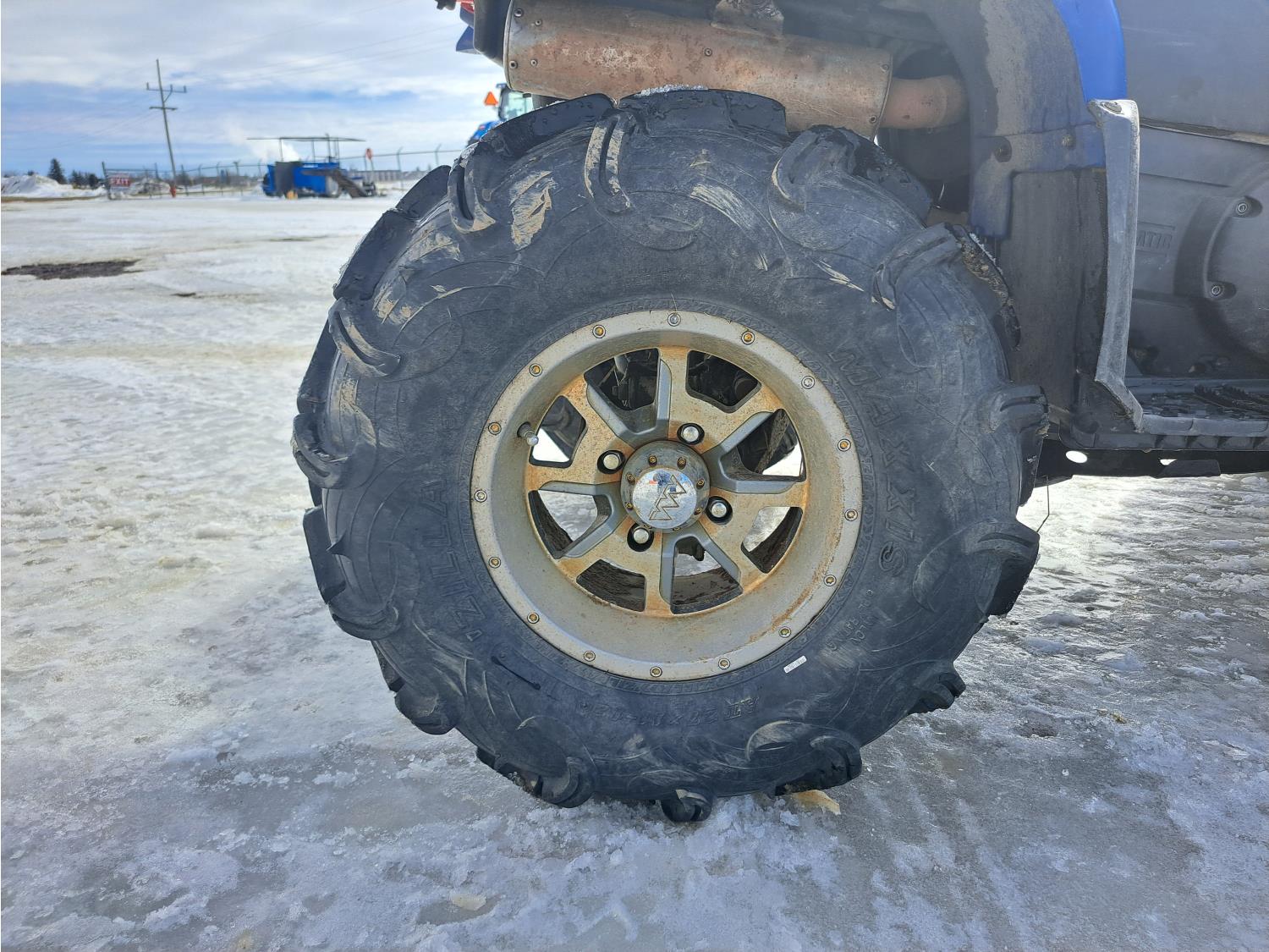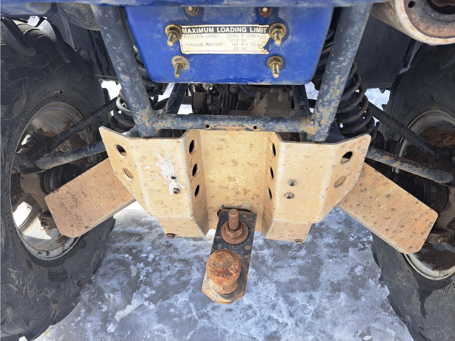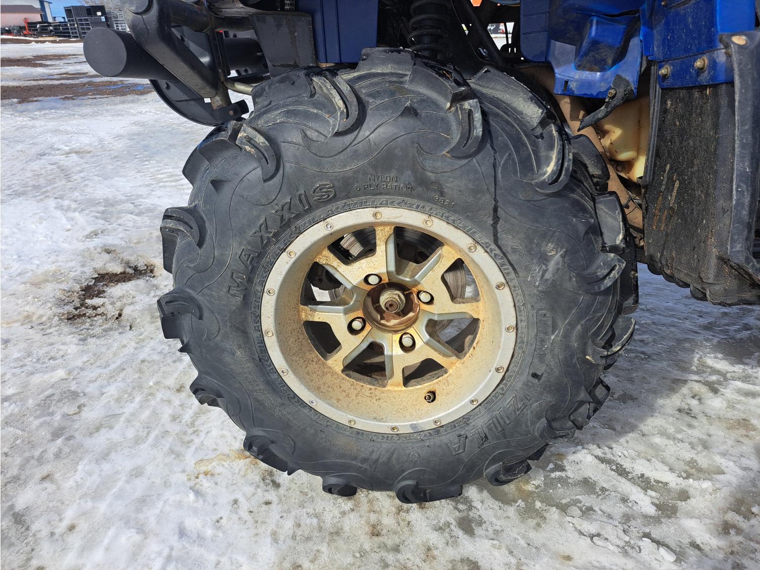 660 cc engine, automatic transmission, Hi/Lo range, reverse, hitch, front and rear racks, front winch, independent suspension, 27X9-12 front tires, 27X11-12 rear tires