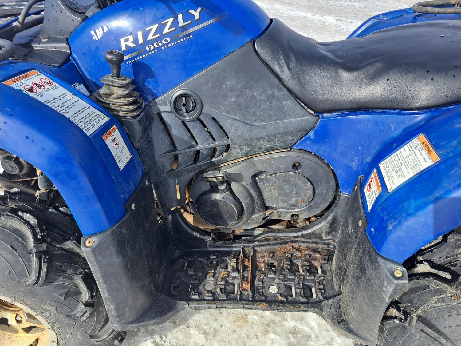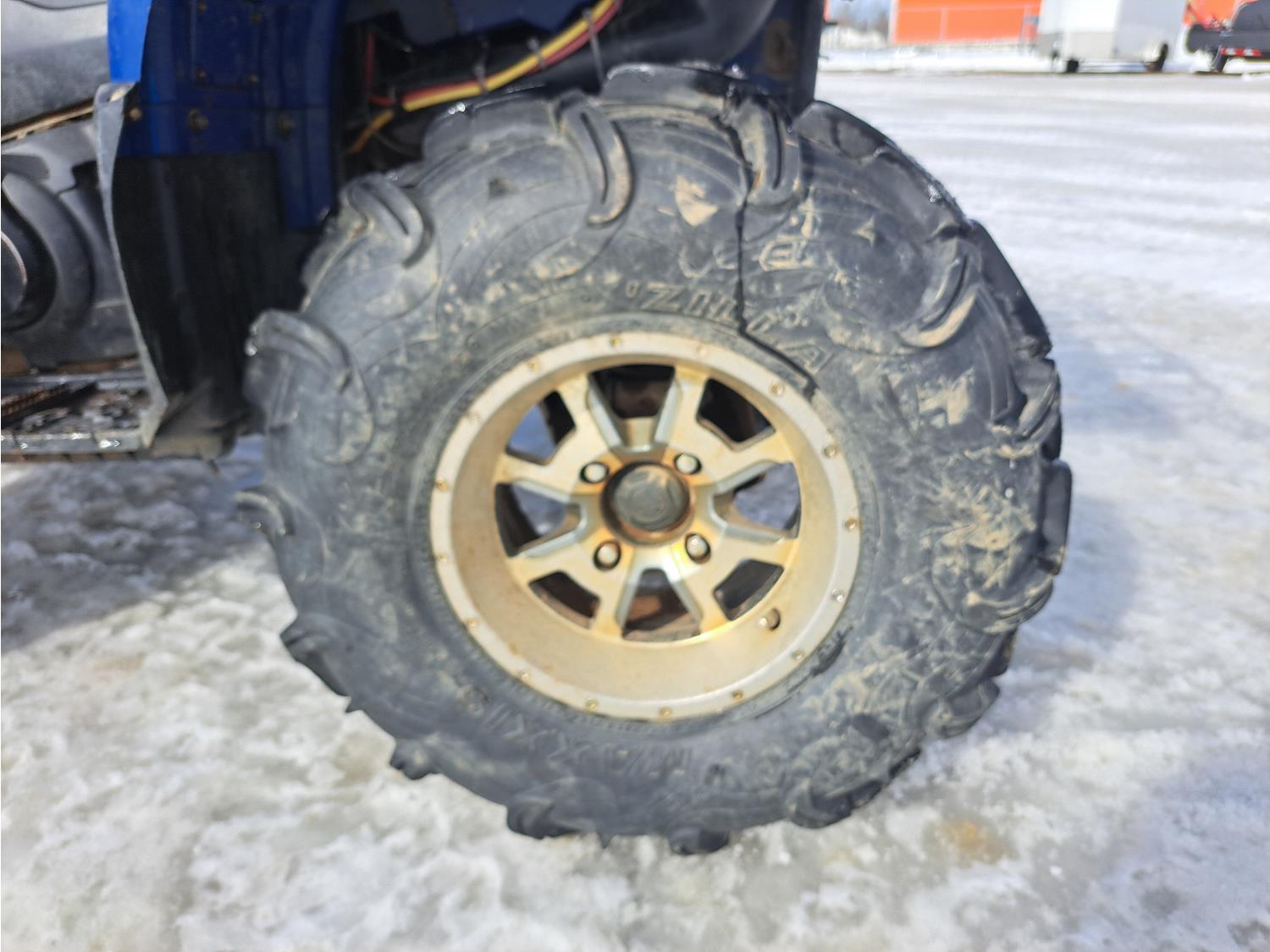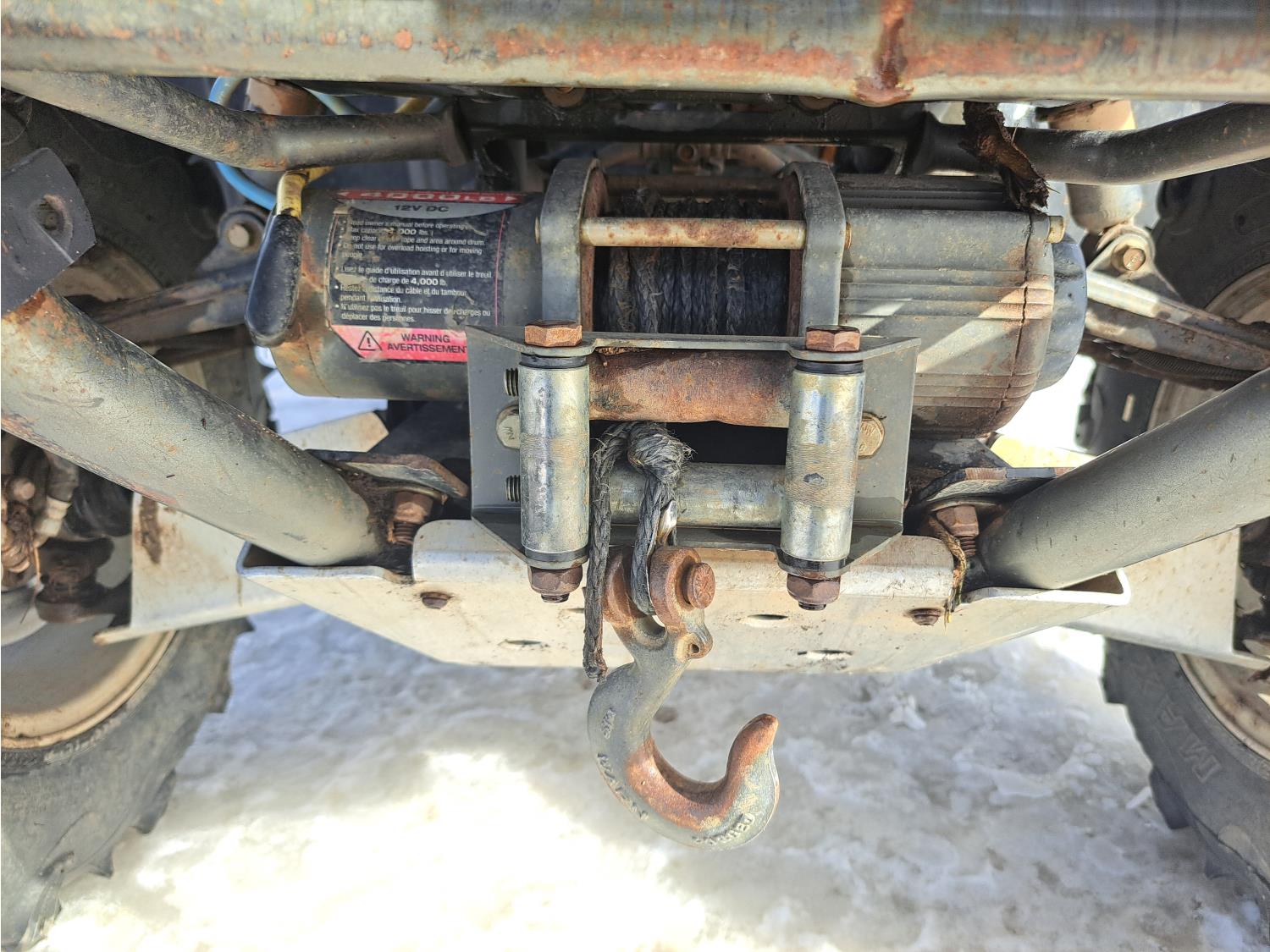 660 cc engine, automatic transmission, Hi/Lo range, reverse, hitch, front and rear racks, front winch, independent suspension, 27X9-12 front tires, 27X11-12 rear tires