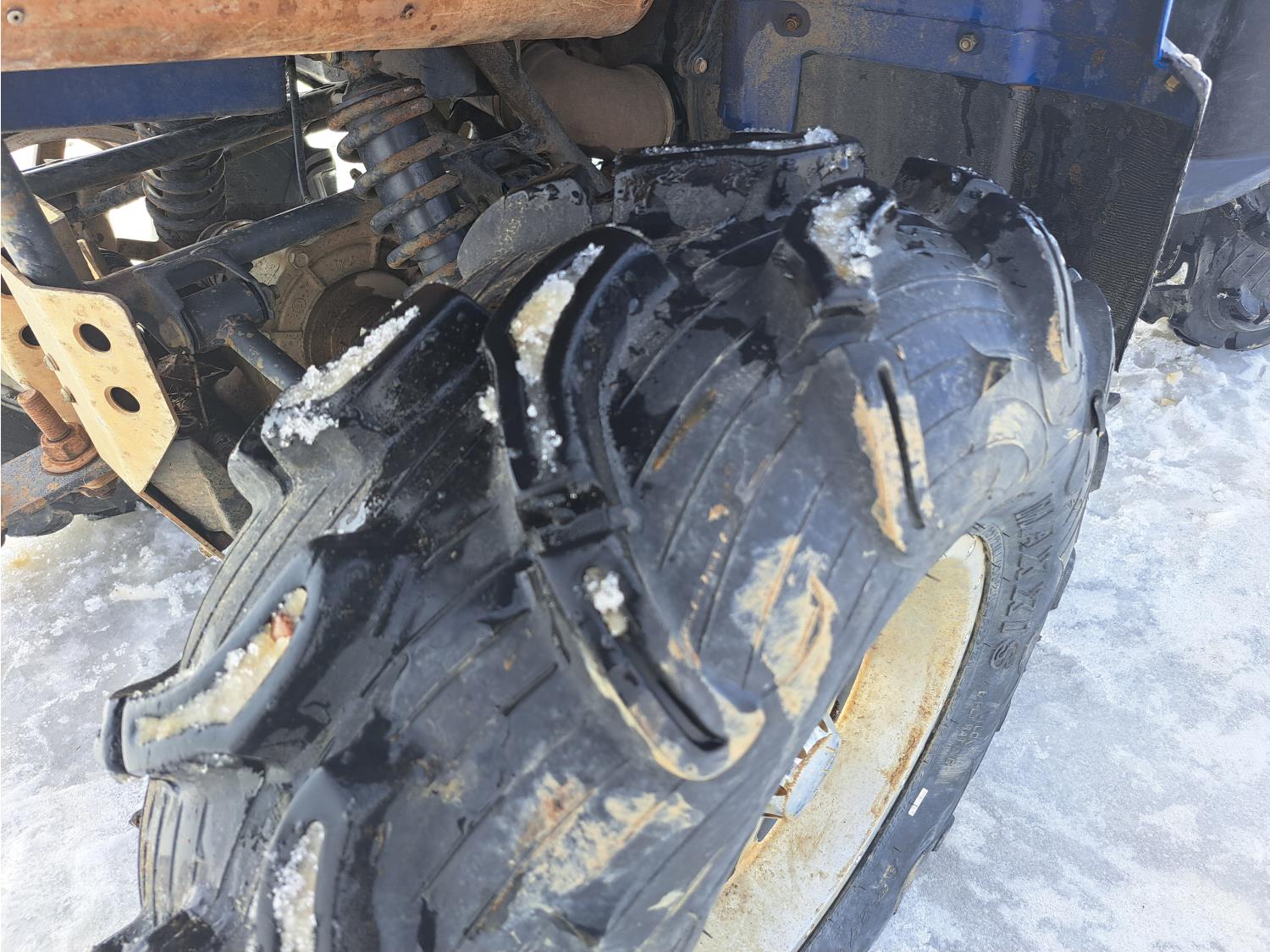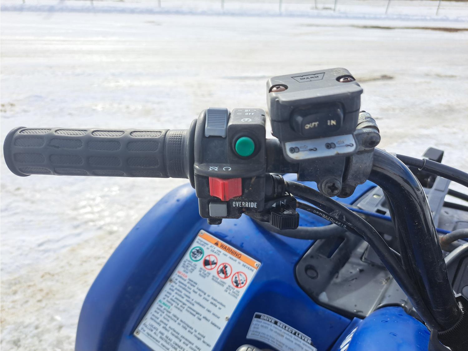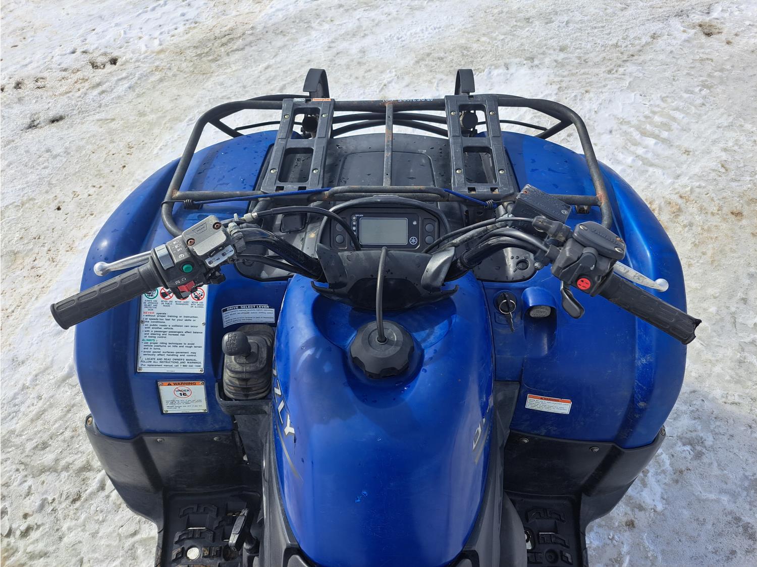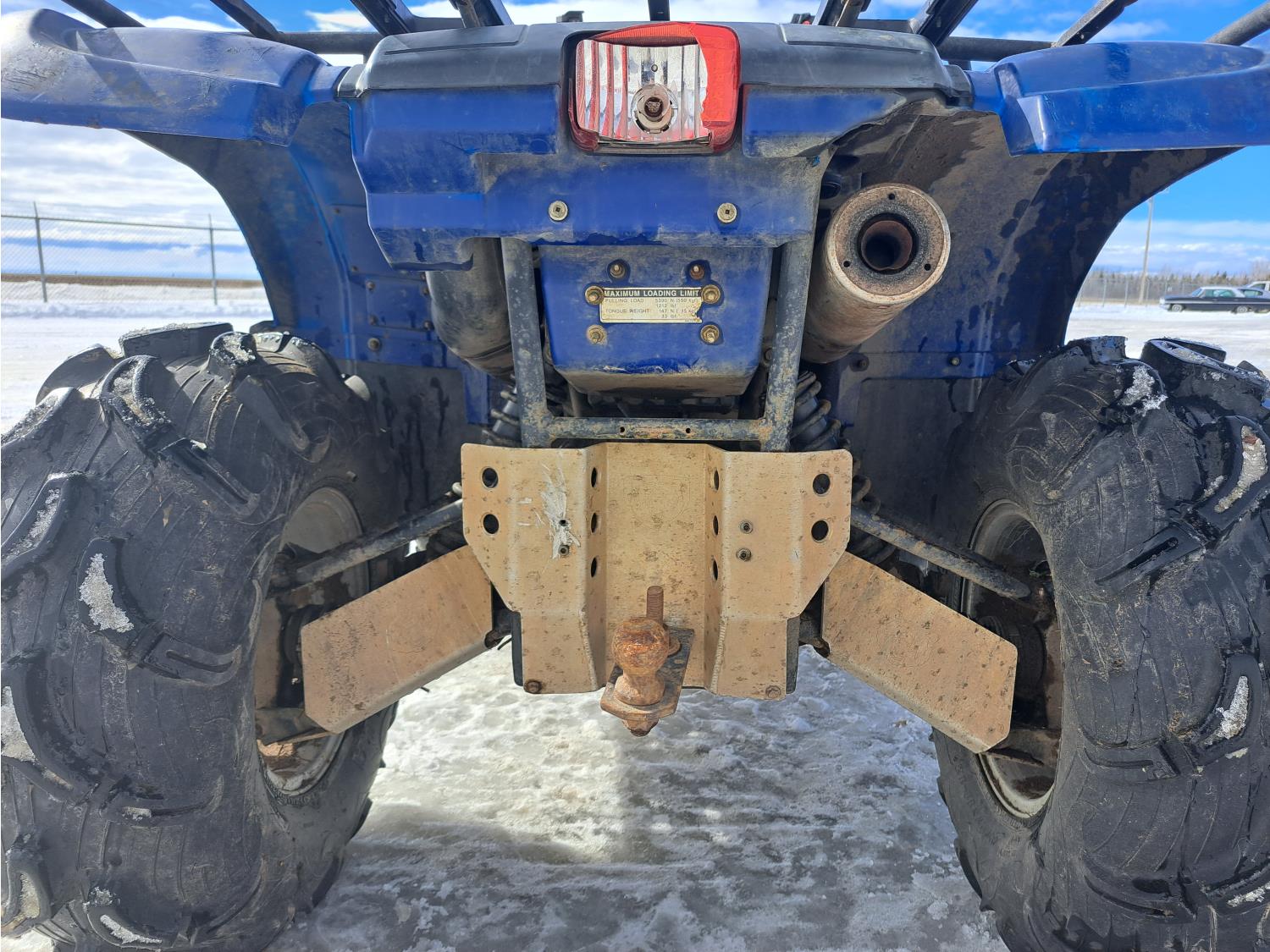 660 cc engine, automatic transmission, Hi/Lo range, reverse, hitch, front and rear racks, front winch, independent suspension, 27X9-12 front tires, 27X11-12 rear tires