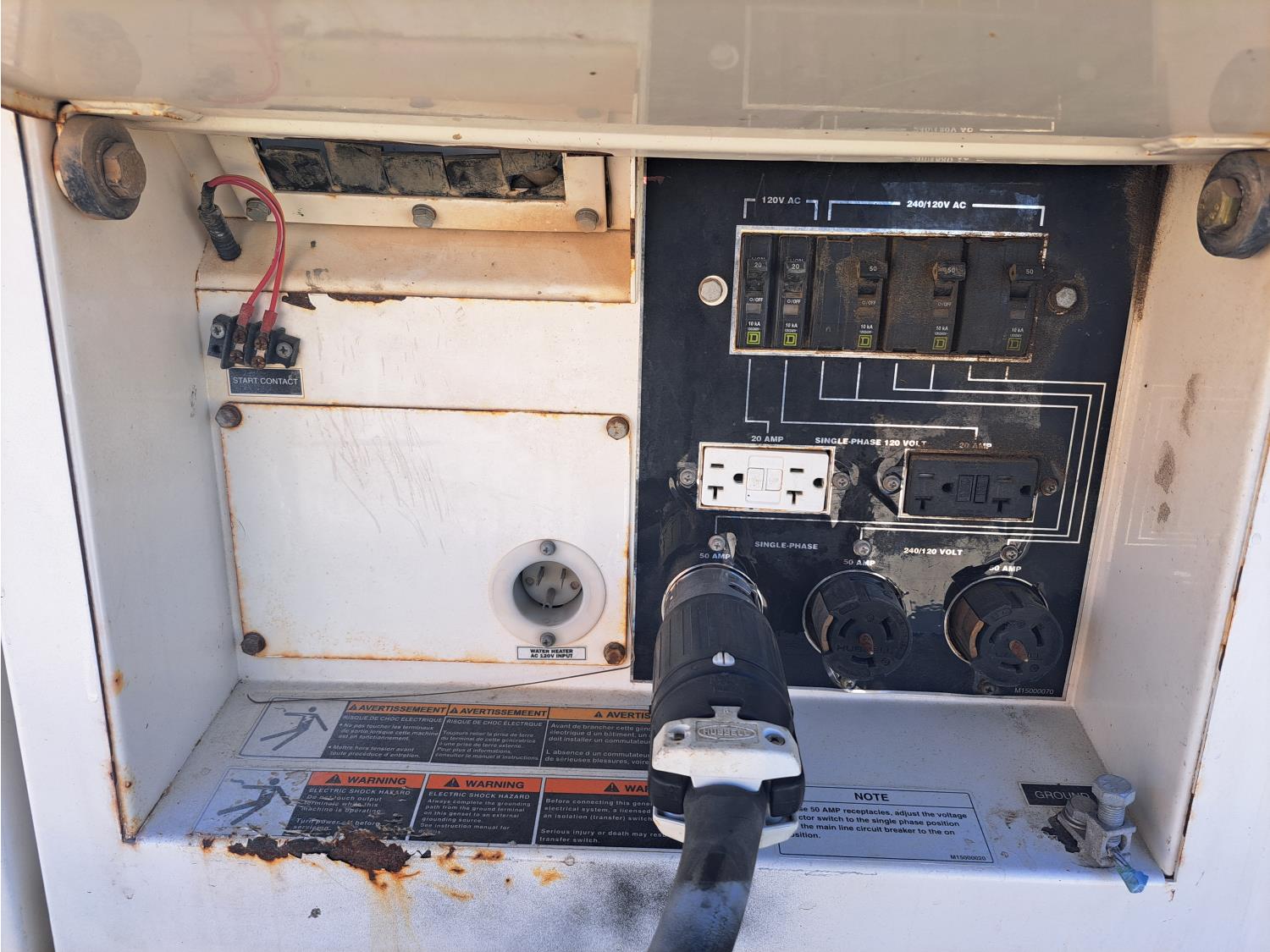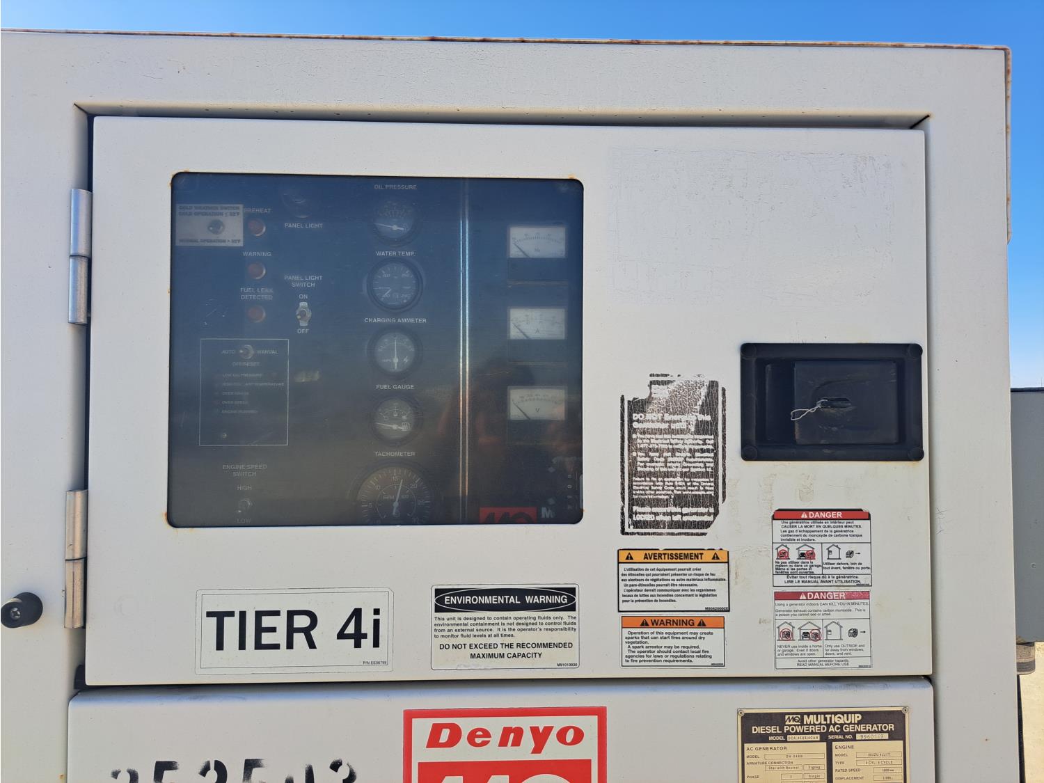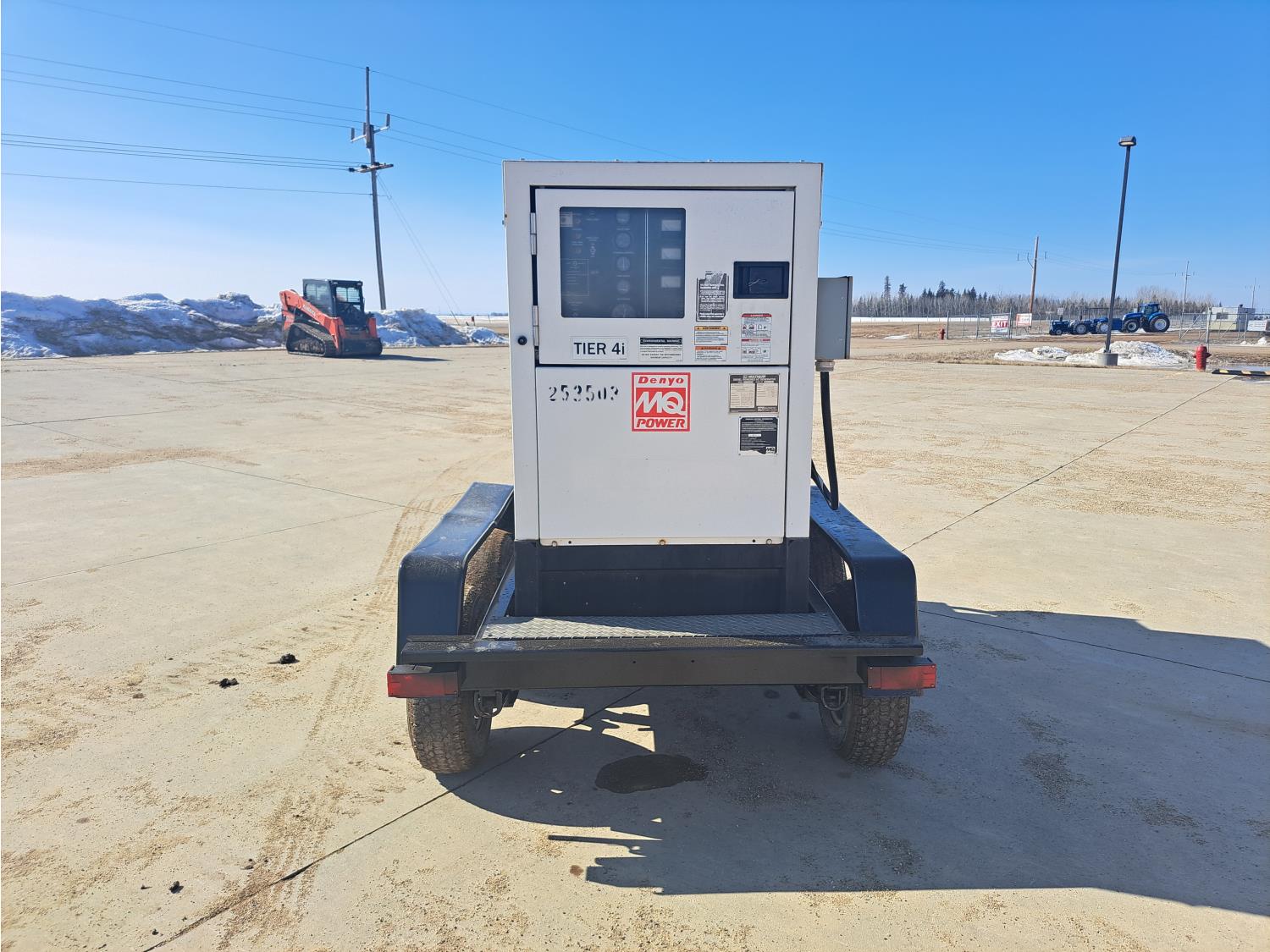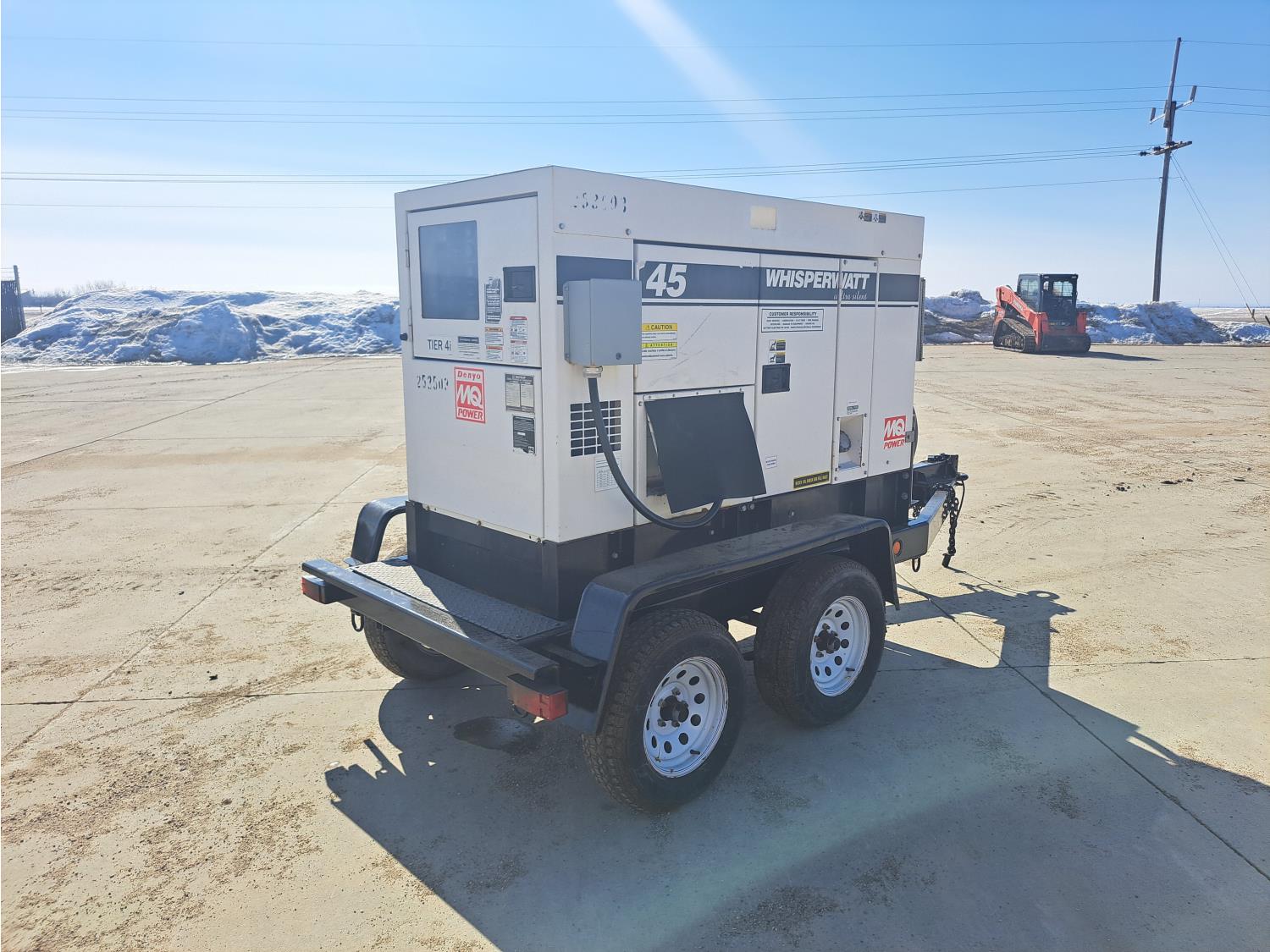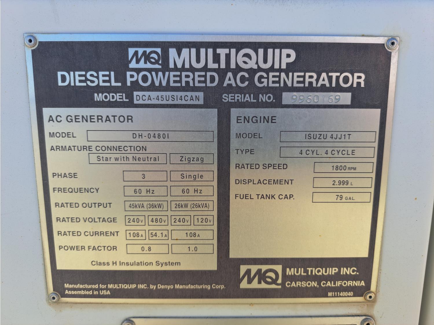 Model, DH-04801 Isuzu 3.0 L, 4 cylinder 67 HP diesel engine, 3 phase, 110/220 power, T/A trailer, pintle hitch, 3500 lb axles, spring suspension, 205/75R14 tires
