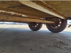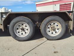 82 inch wide deck, wood deck, stand up ramps, spring suspension, ball hitch, stake pockets, 3500 lb axles, 205/75R15 tires
