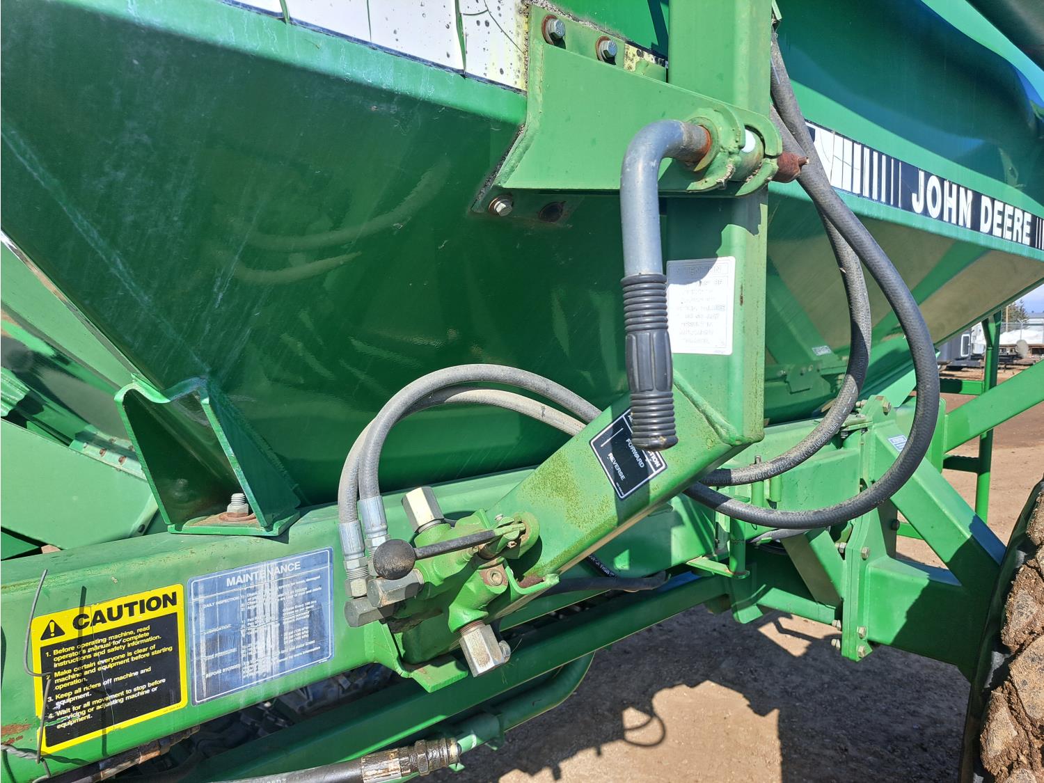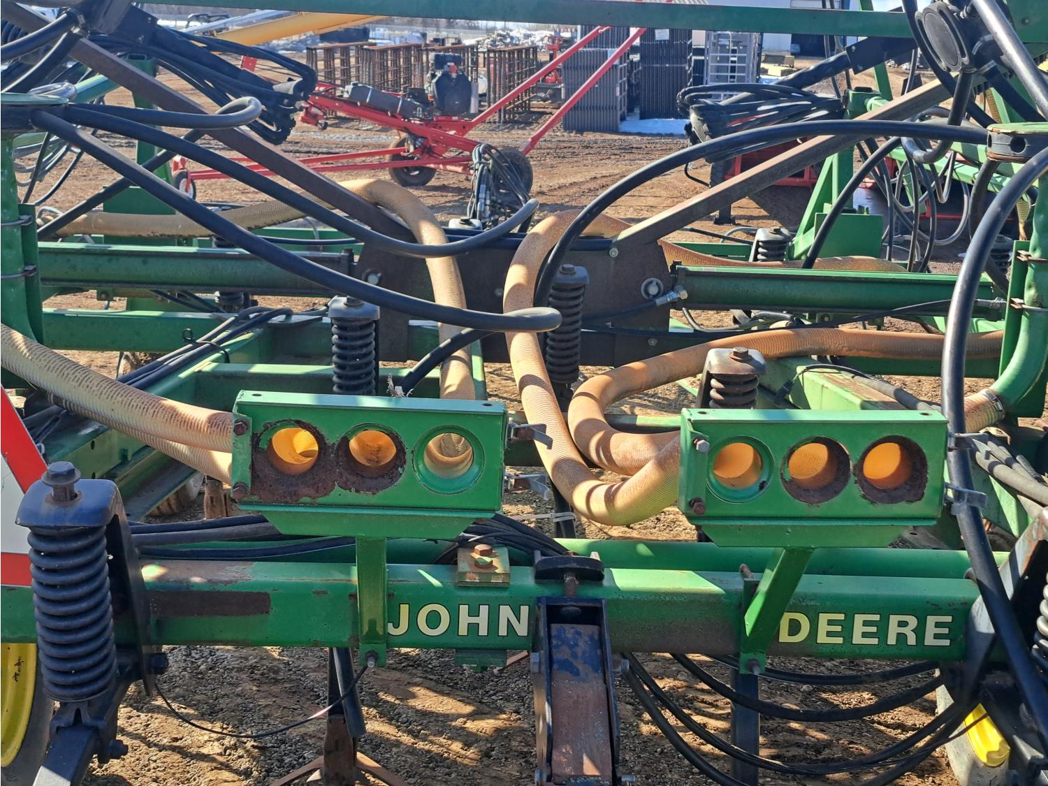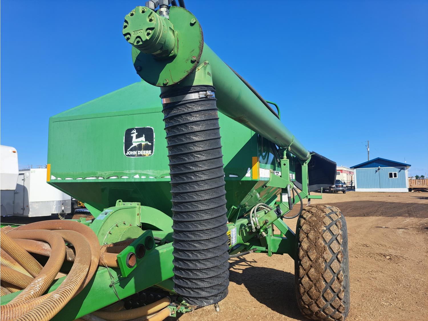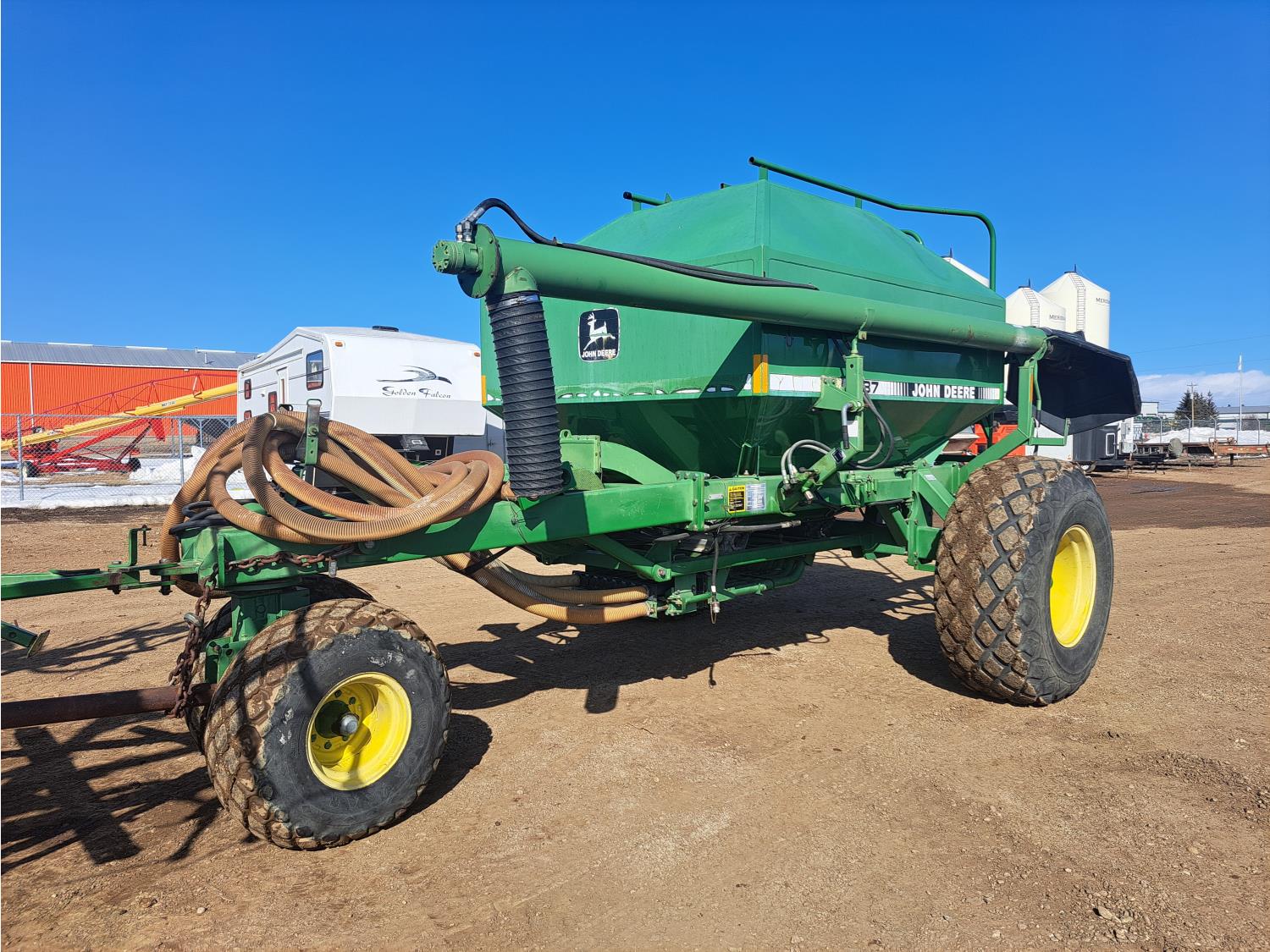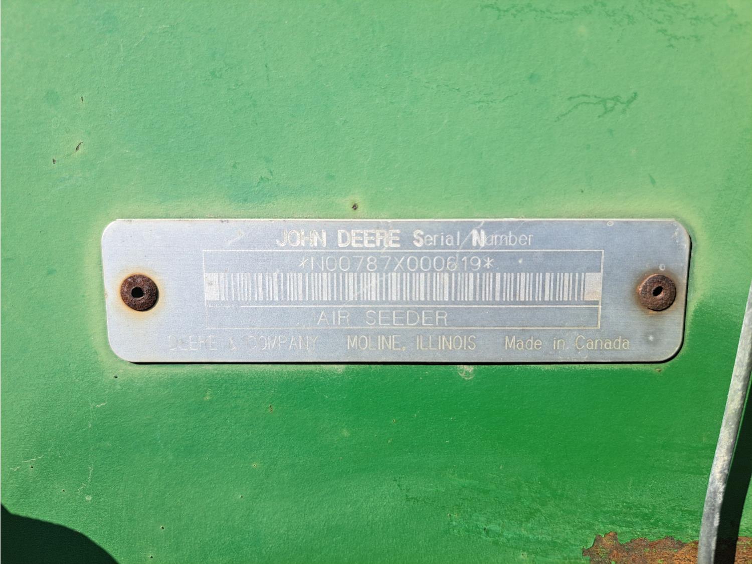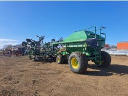 349 John Deere 610 27 Ft Air Drill with John Deere 787 Tow Behind Air Cart