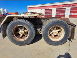 Cummins 444 14.0 L 6 cylinder diesel engine, engine brake, Eaton FULLER 13 speed manual transmission, radio, rubber block suspension, 13,200 lb front axle, 46,000 lb rear axles, diff lock, 232 inch WB, 11R24.5 tires
