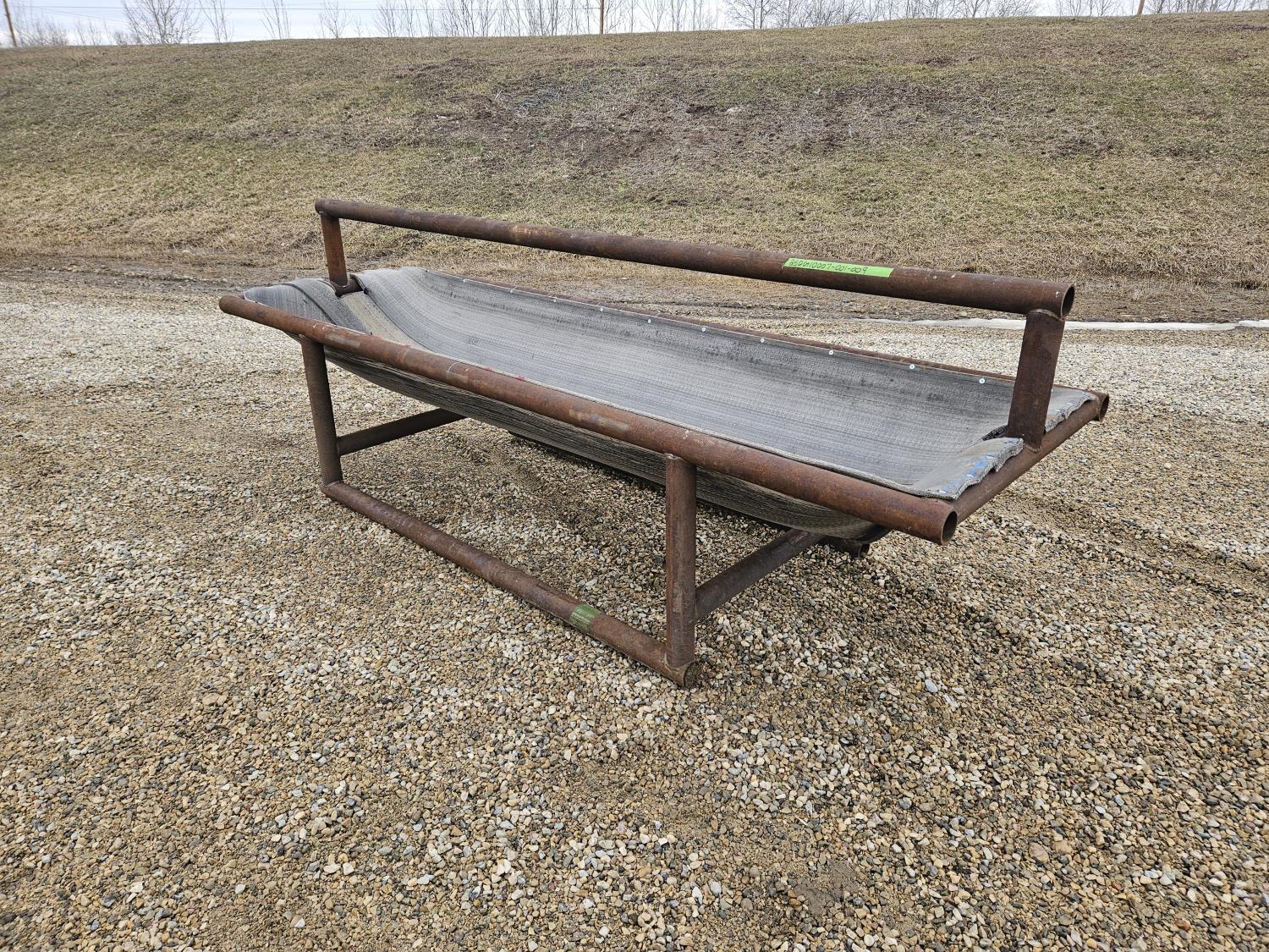 34 inch wide, 28" tall, 2-7/8 inch steel pipe construction, lift bar, conveyor belting interior