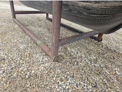 34 inch wide, 28" tall, 2-7/8 inch steel pipe construction, lift bar, conveyor belting interior
