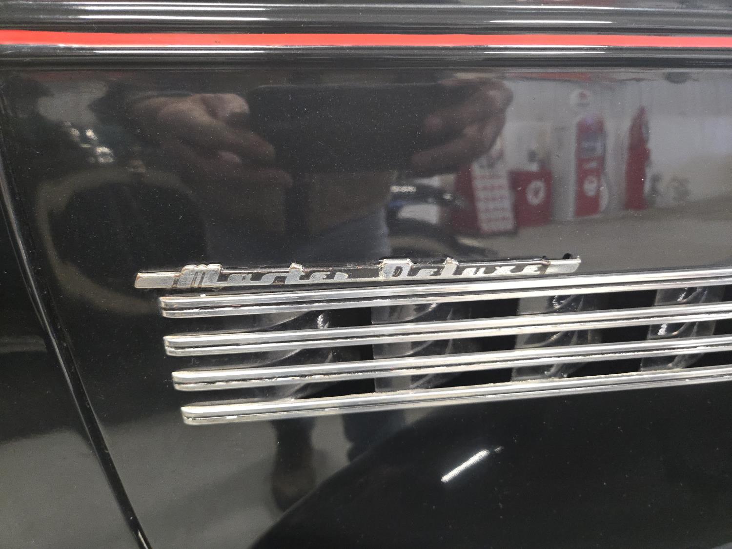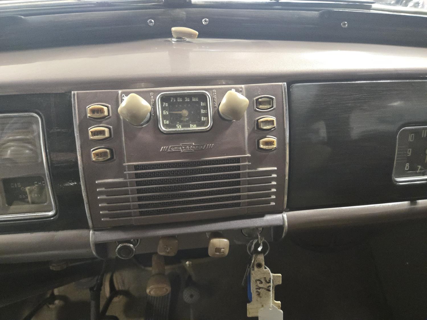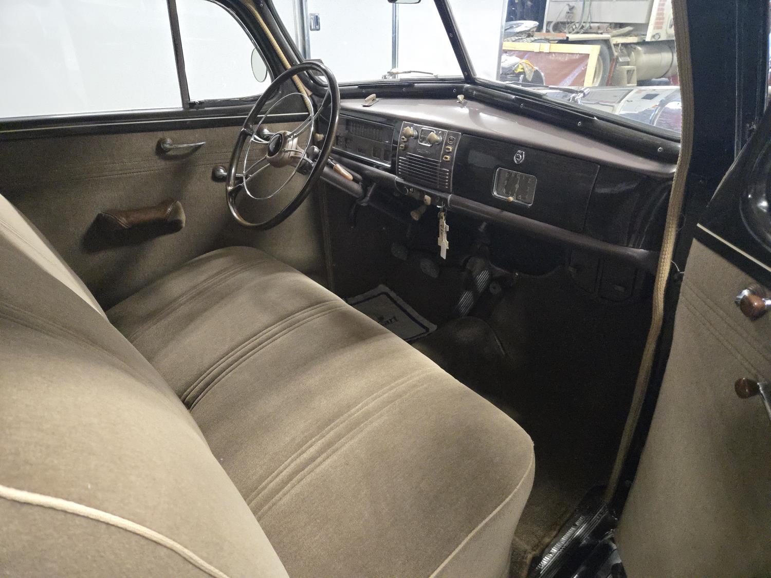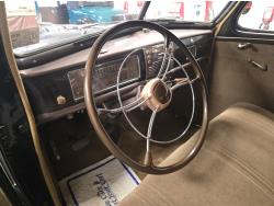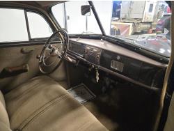 6 cylinder, 3 speed manual transmission, clock in glove box door, 6.00-16 wide white wall tires, total restoration looks like very nice