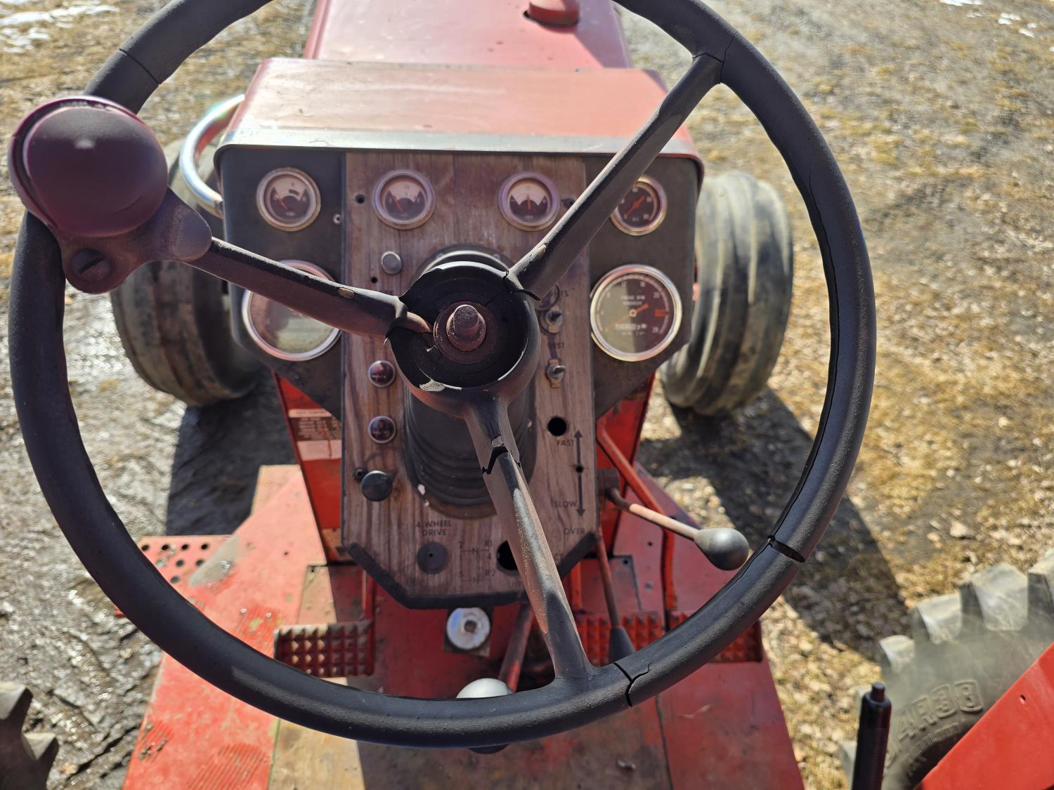 Perkins 5.1 L 6 cylinder diesel engine, 18 speed partial power shift transmission, 540/1000 PTO, 2 rear hydraulic outlets, 11.00-16 front tires, 18.4R38 rear tires, open station w/canopy