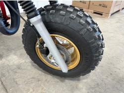 250 cc 2 stroke gas engine, kick start, front tire: 23.5x8.00-11, rear tires: 20x10-9