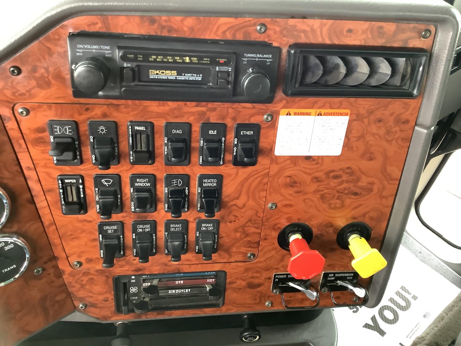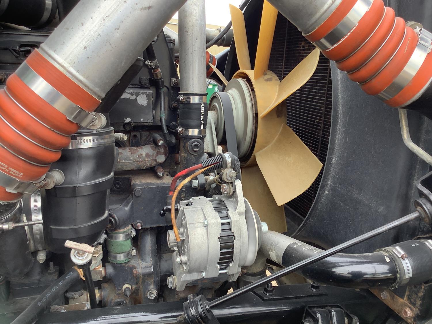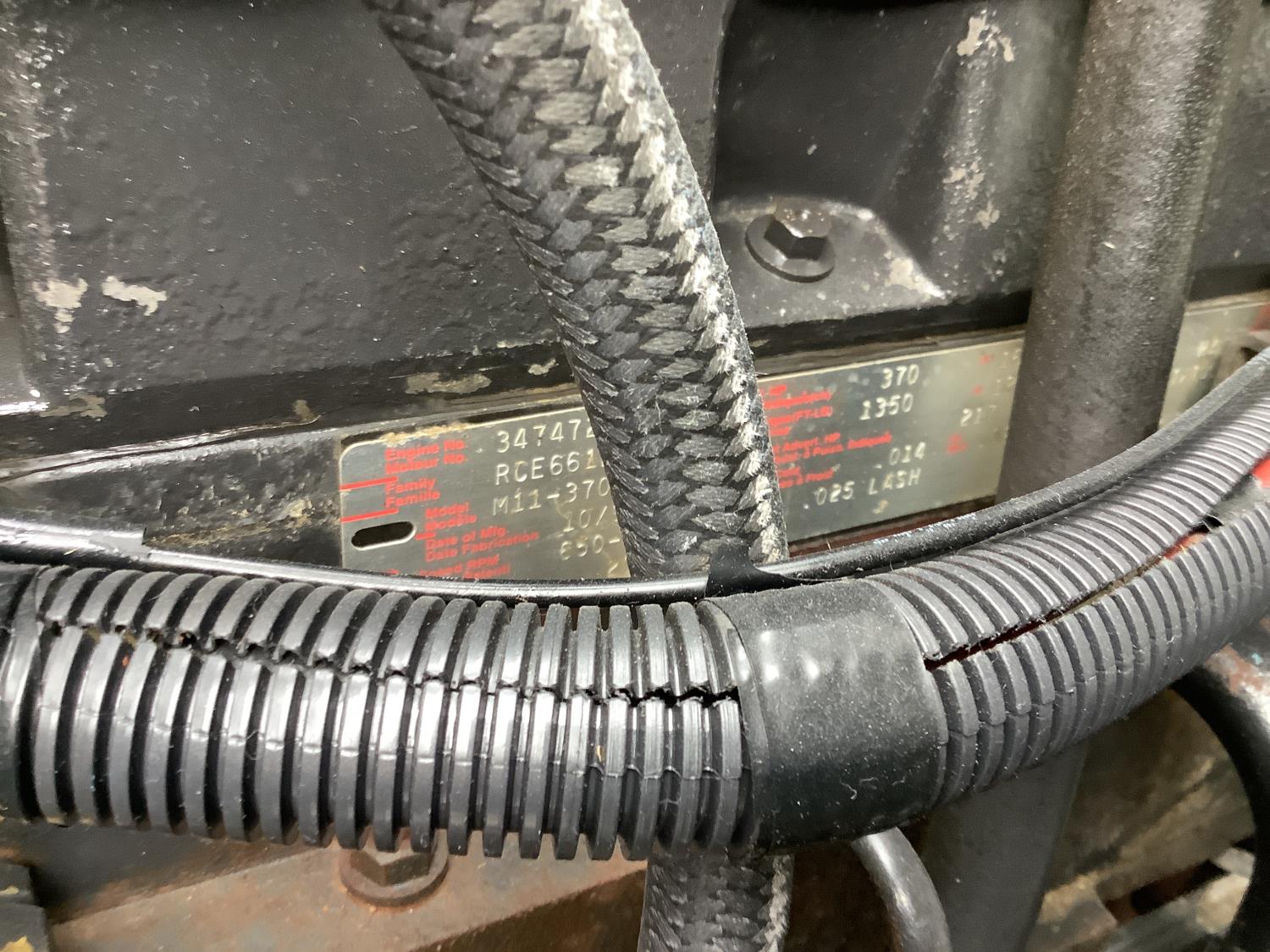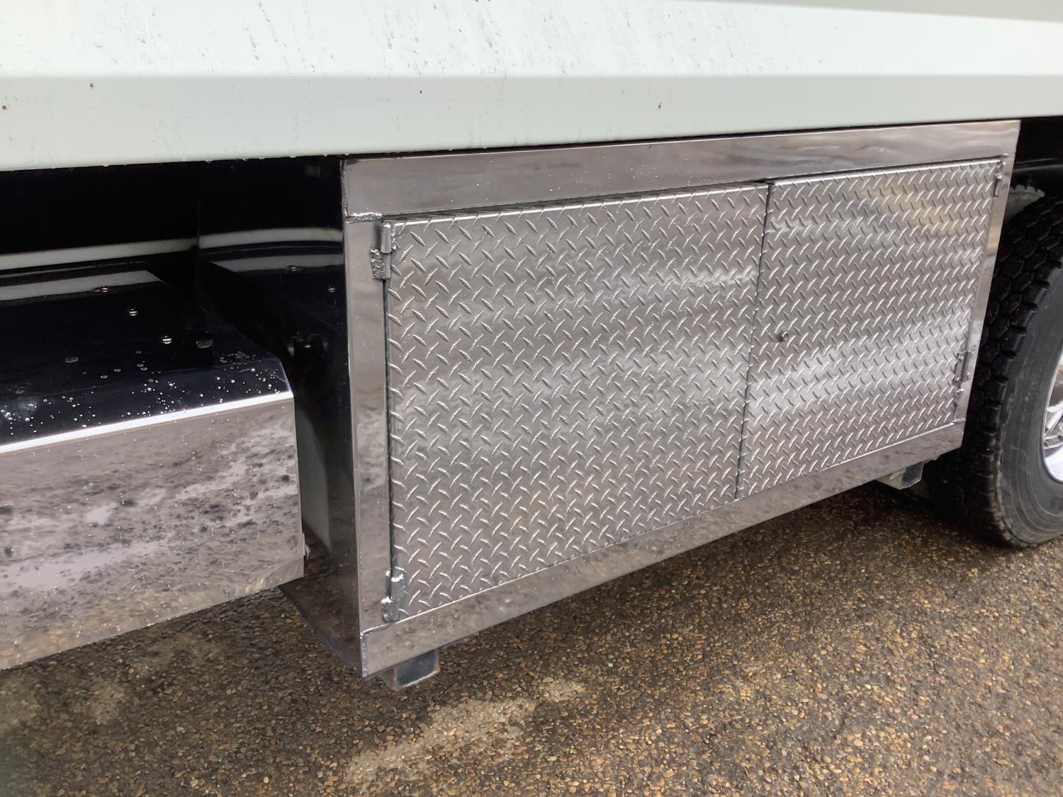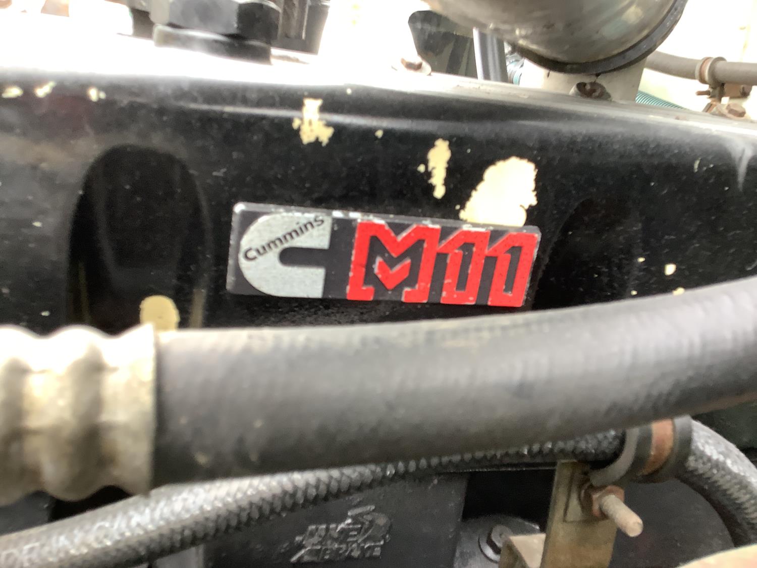 Cummins M11 6 cylinder 370 HP engine, engine brake, 10 speed manual transmission, A/C, cruise control, air ride driver seat, radio, Eagle interior package , air shift PTO, side mount tool box, 20 ft Midland Unibody grain box, roll tarp, Harsh hoist, 3 piece tailgate, wireless remote for hoist and rear tailgate chute, air brake control, pintle hitch, air ride suspension, 12,500 lb front axle, 40,000 lb rear axles, 3 way diff locks, all aluminum wheels, 11R22.5 tires