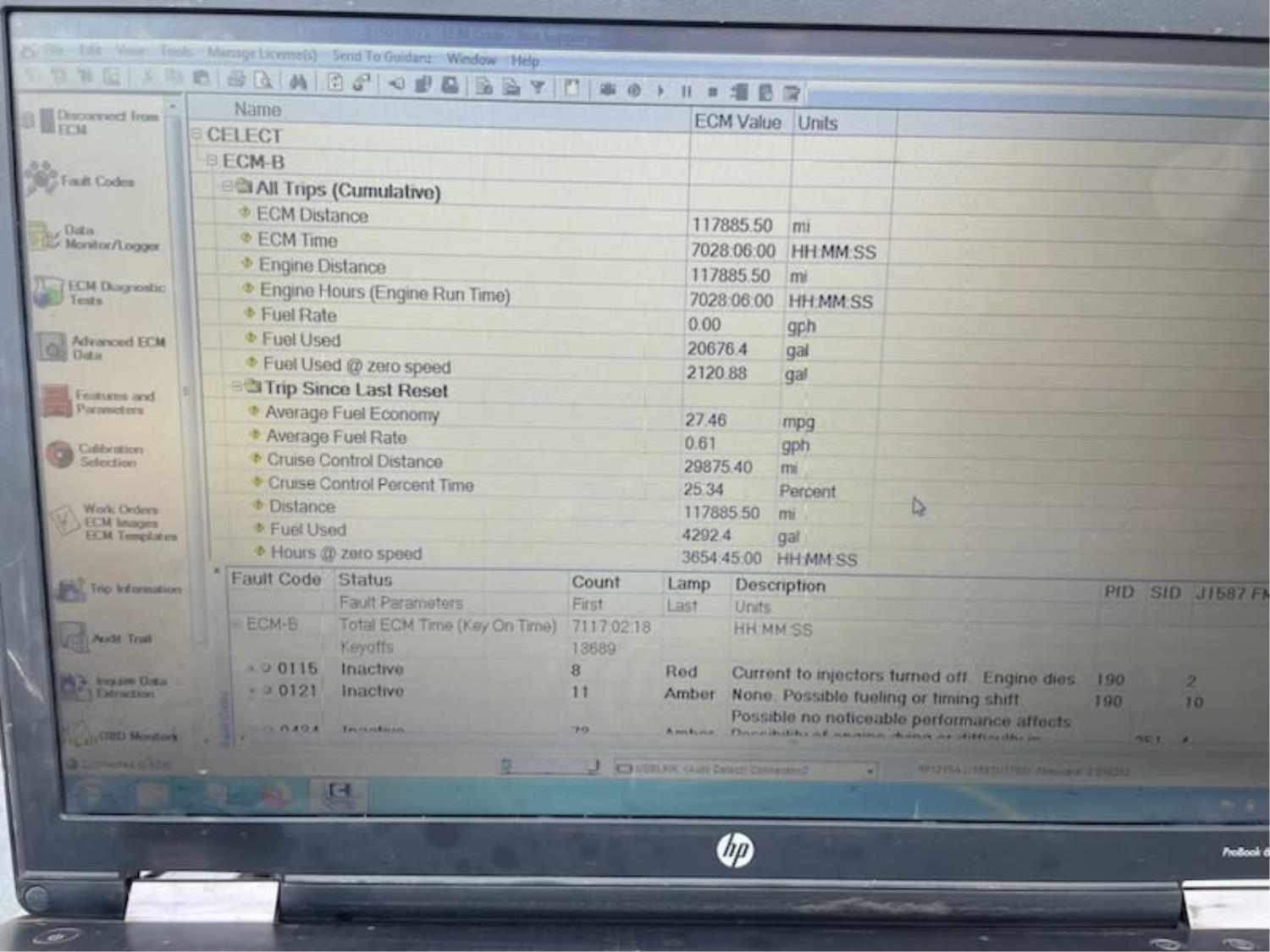Miles and hours verified with ECM print out
