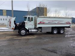 This is the cleanest grain truck for its year you will find we had the ECM on the engine down loaded Mar 25 and those are the Miles and Engine hours The truck was built into a grain truck in approximately 2000. Tires were replaced a few years ago, This truck has always been stored inside comes off a grain farm near Devon, AB. It’s the good old school M11 Cummins engine with no emissions or DEF. I personally know the owner of the truck and is letting us sell it for him he has gone to a tractor trailer unit. Don’t miss out on this one.
