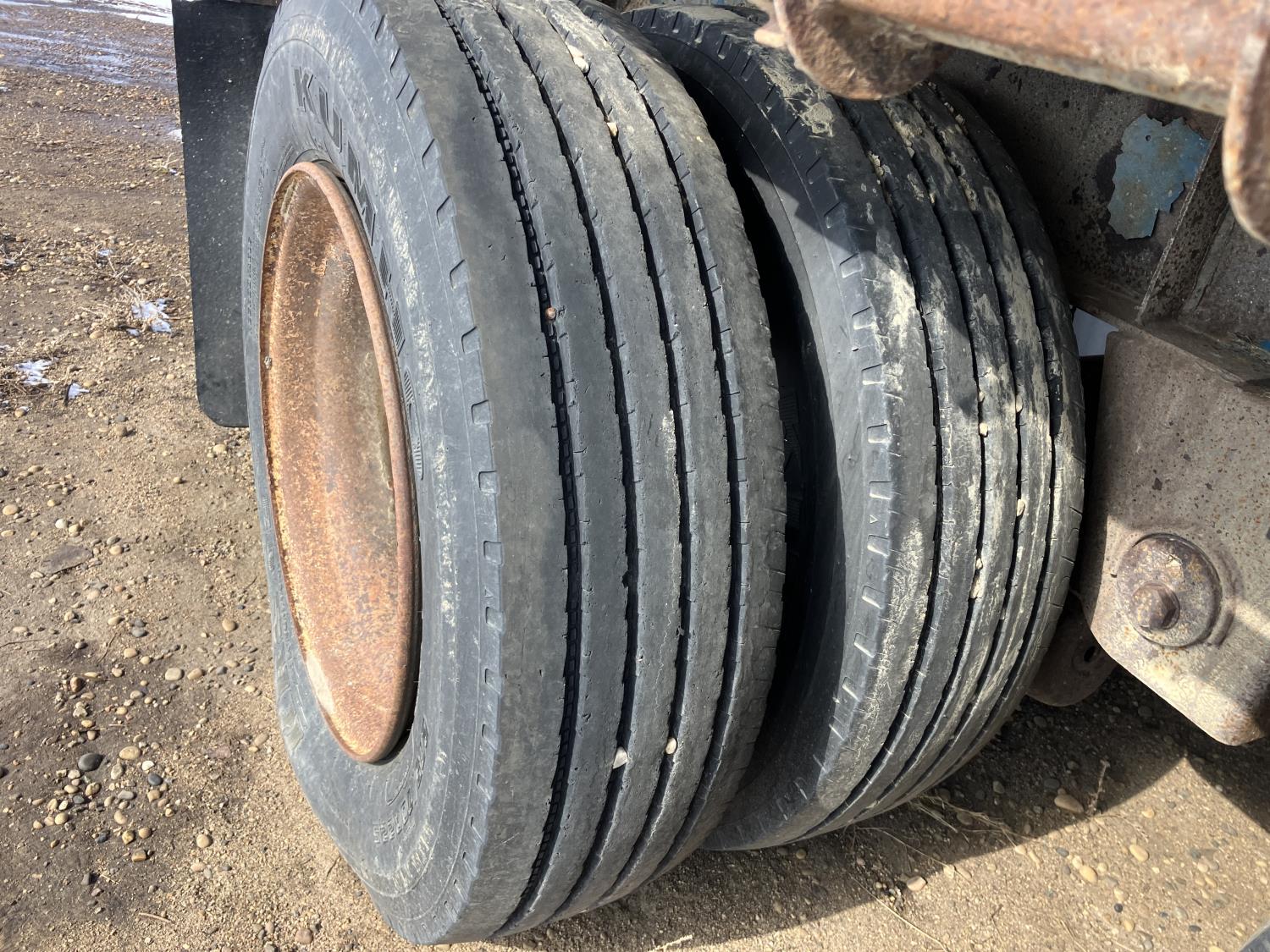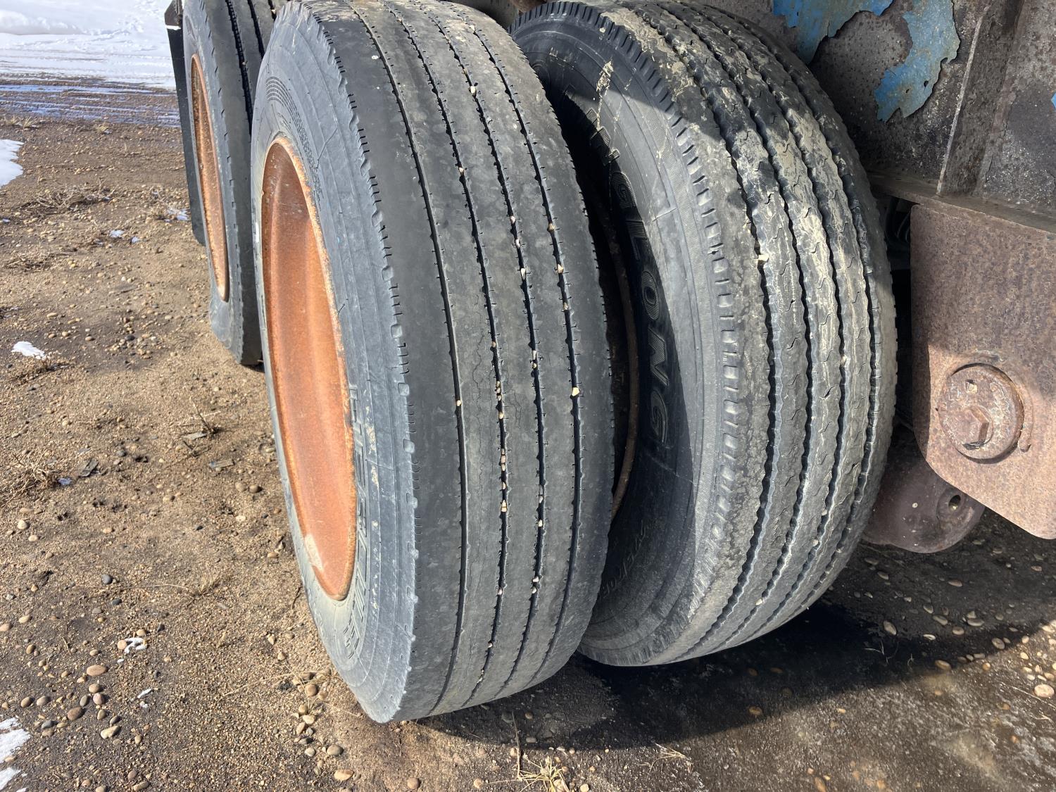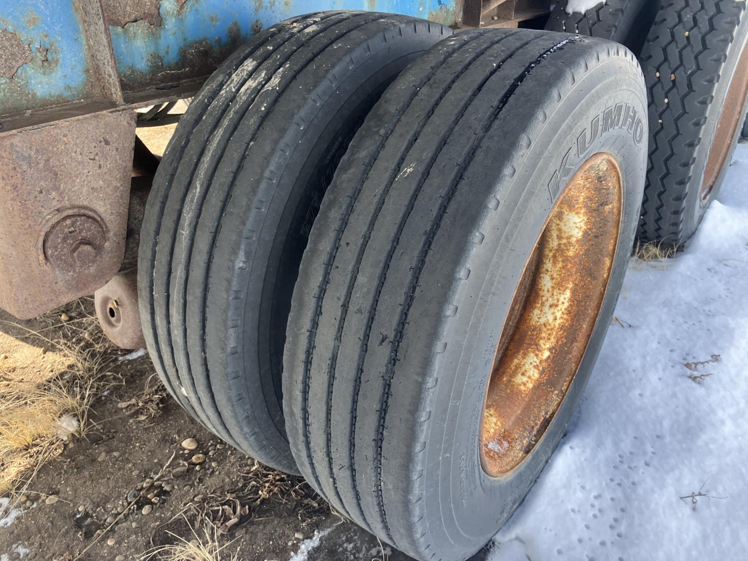 32 ft lead length, 28 ft pup length, wood deck, cargo winches, fold up hay racks, air ride suspension, 11R22.5 tires