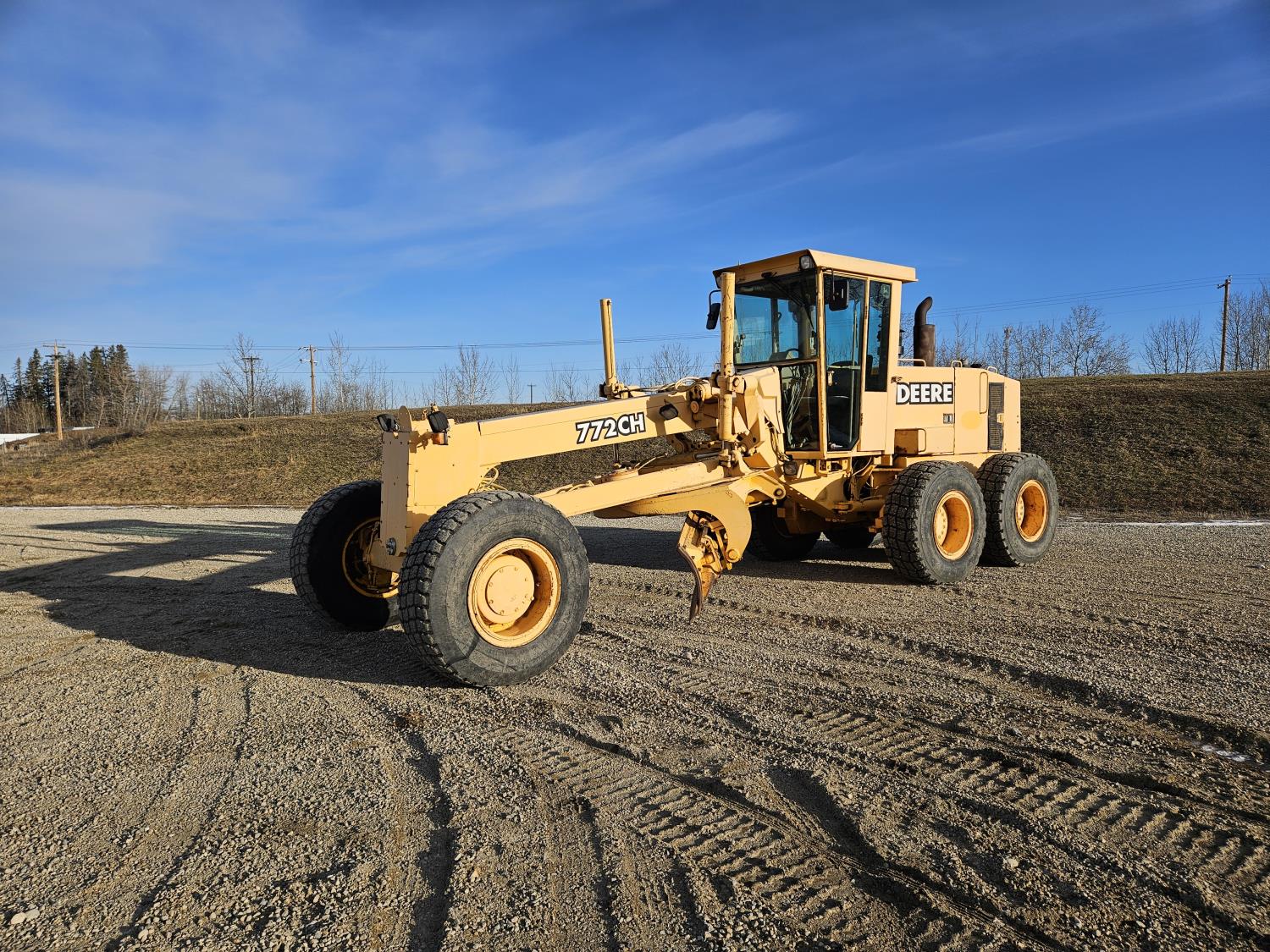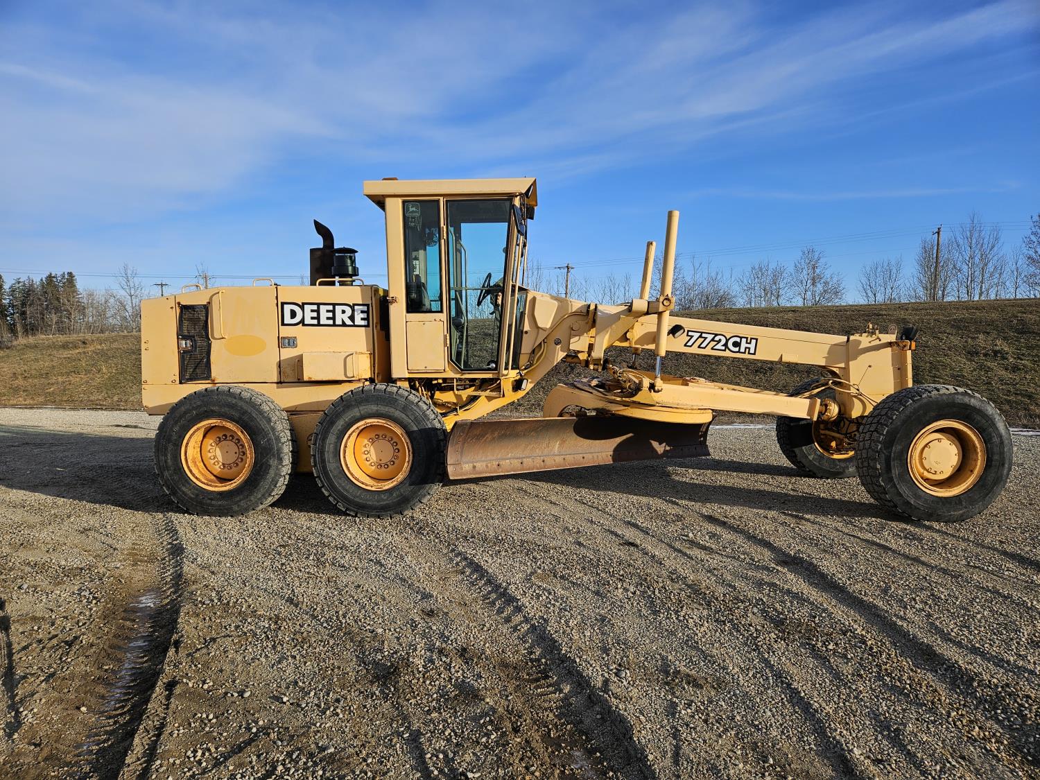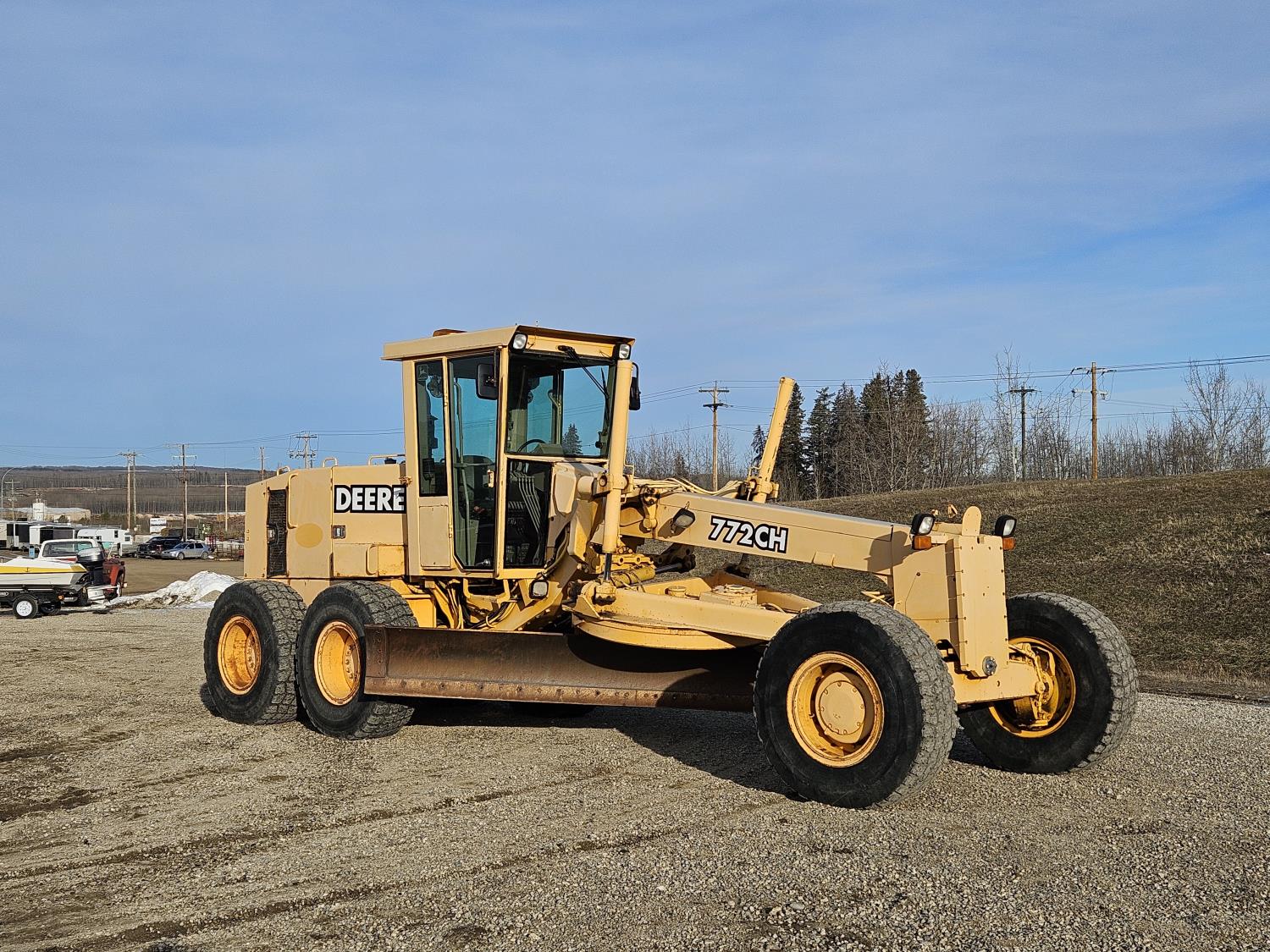 Enclosed cab, A/C, 14 Ft moldboard, 6 cylinder diesel engine 8 speed powershift transmission, 17.5R25 tires