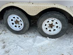 90 inch interior width, 74 inch interior height, ball hitch, side door, fold down door, electric brakes, spring suspension, 205/75R15 tires