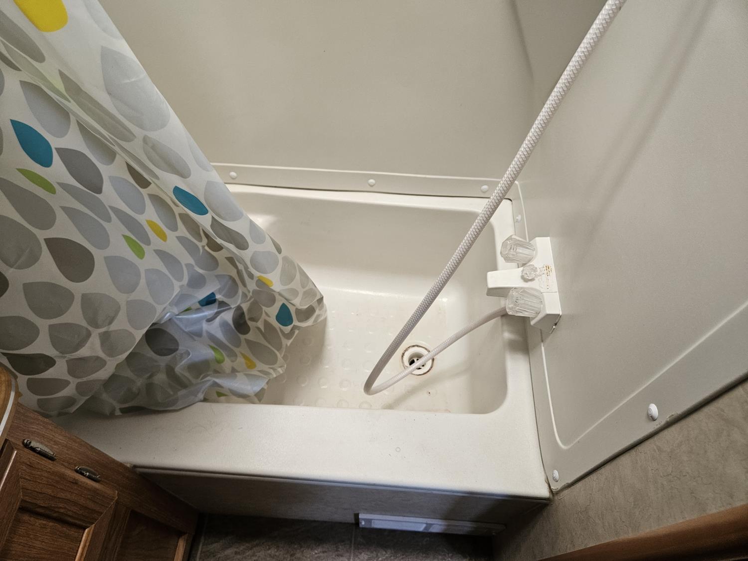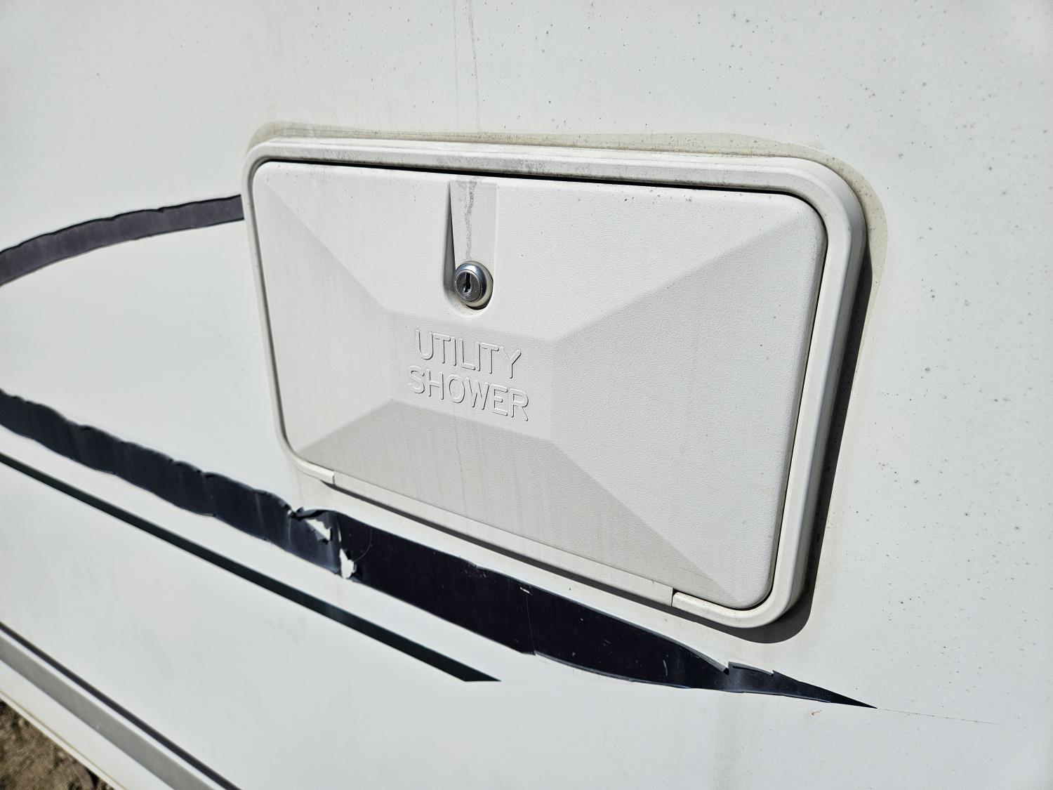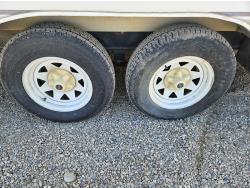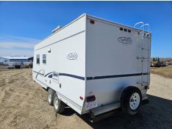 Sleeps 4, stove, fridge, full bath, A/C, outdoor shower, manual awning, spring suspension, electric brakes, 205/75R14 tires