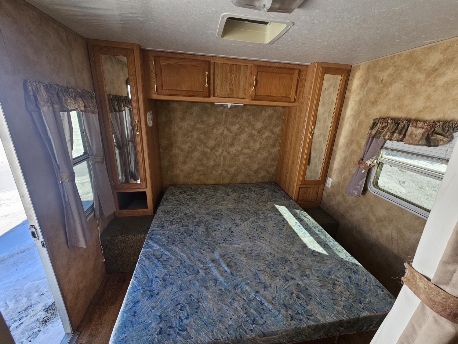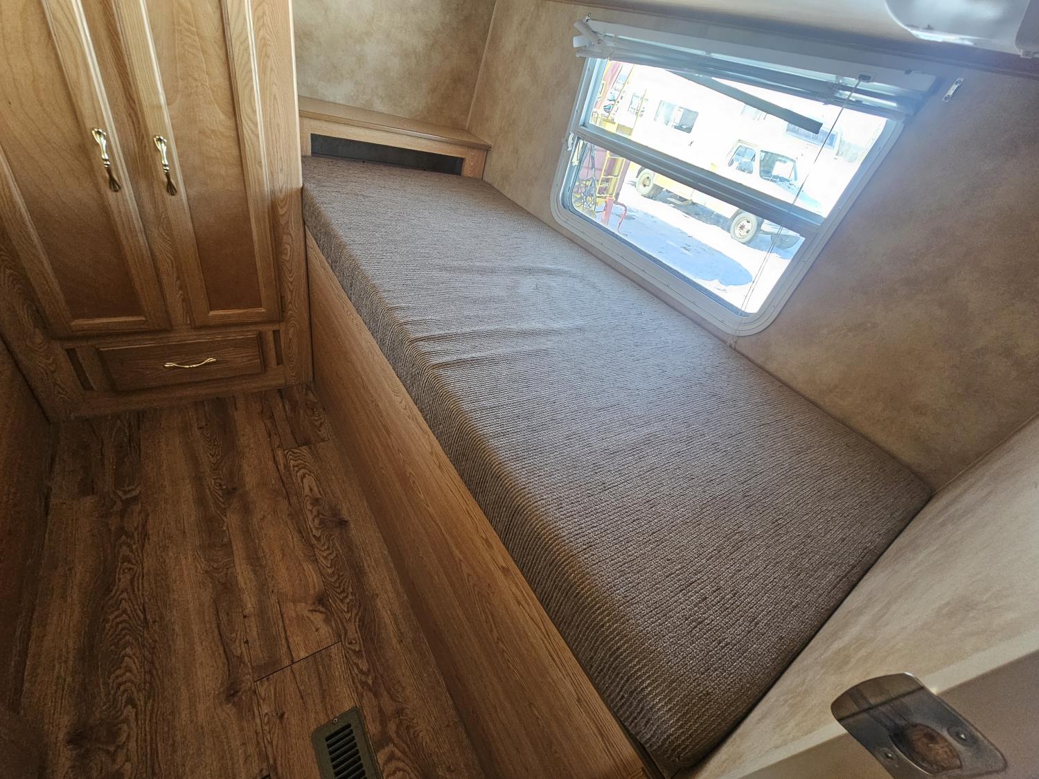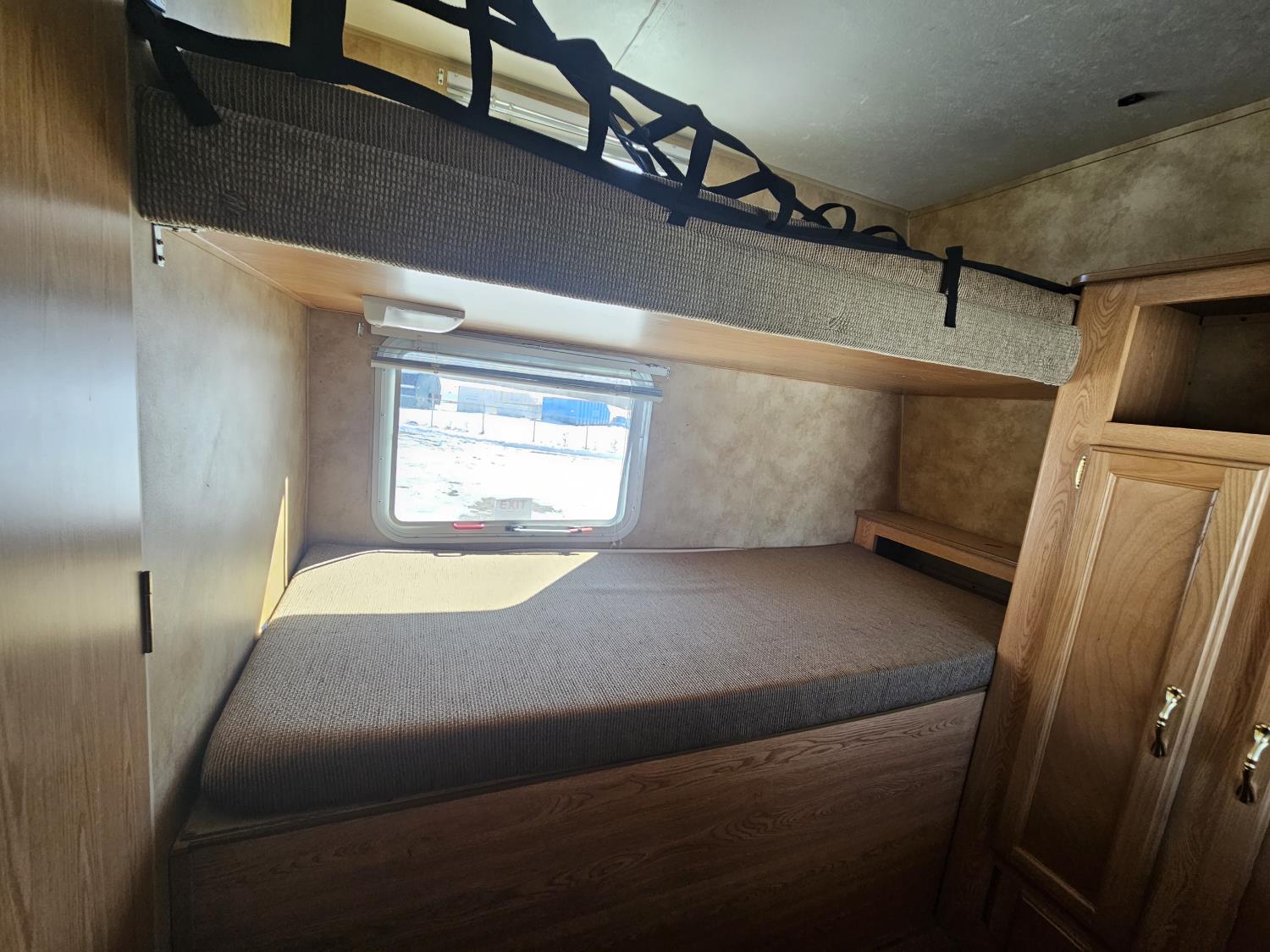 Sleeps 8, stove, fridge, microwave, full bath, master bedroom, A/C, 1 slide, manual awning, spring suspension, (4) bunk beds, 225/75R15 tires