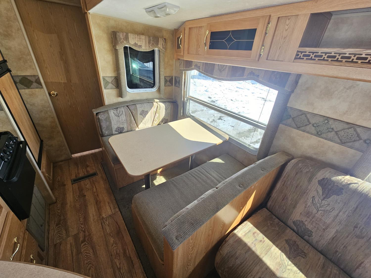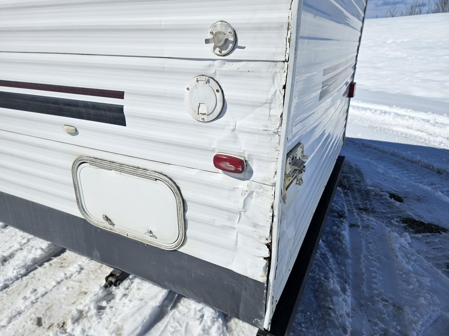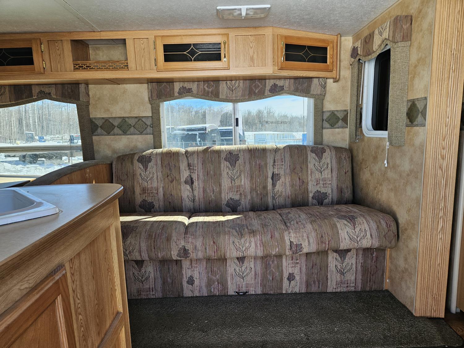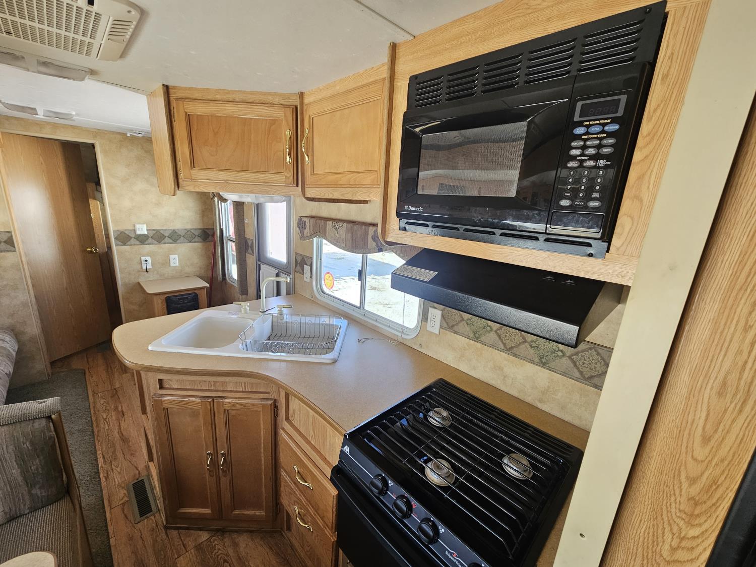 Sleeps 8, stove, fridge, microwave, full bath, master bedroom, A/C, 1 slide, manual awning, spring suspension, (4) bunk beds, 225/75R15 tires