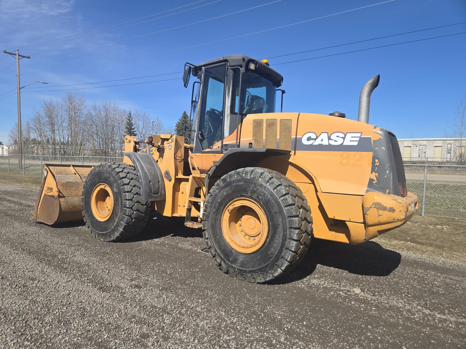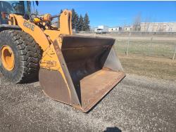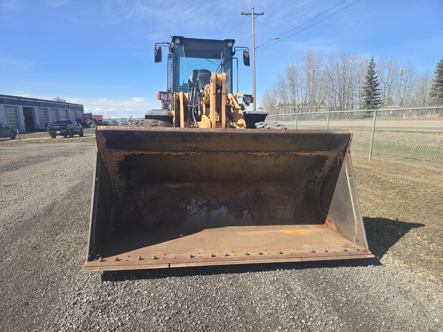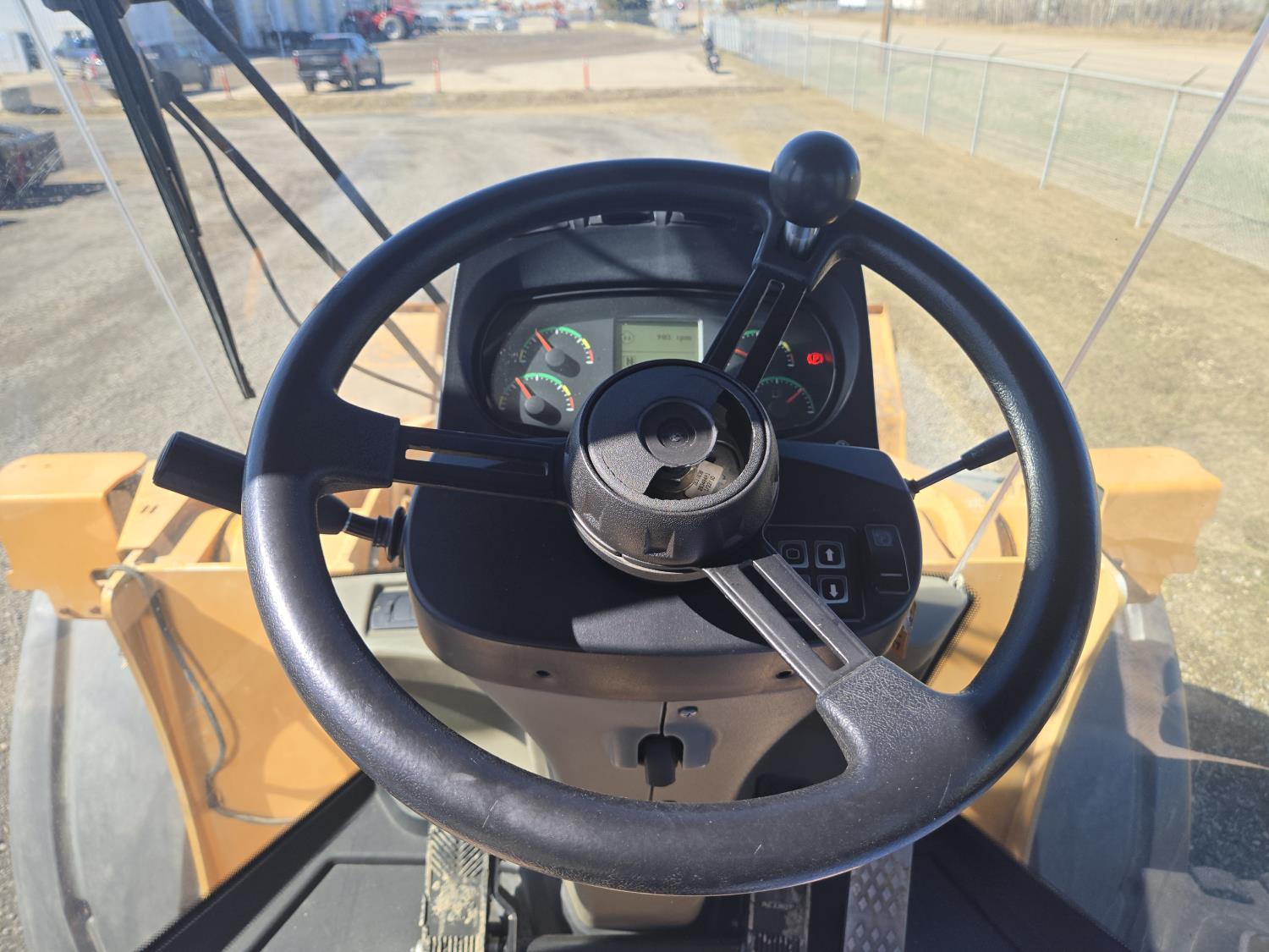 Enclosed cab, A/C, ride control, smooth bucket, hydraulic Q/C coupler, 4.5 Cu yard bucket, 3rd valve, 23.5R25 tires