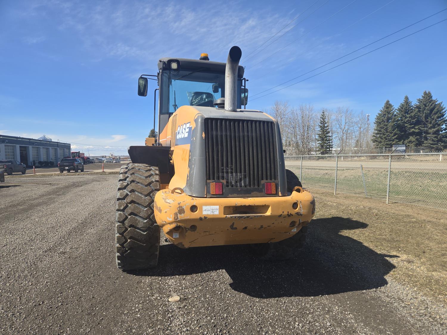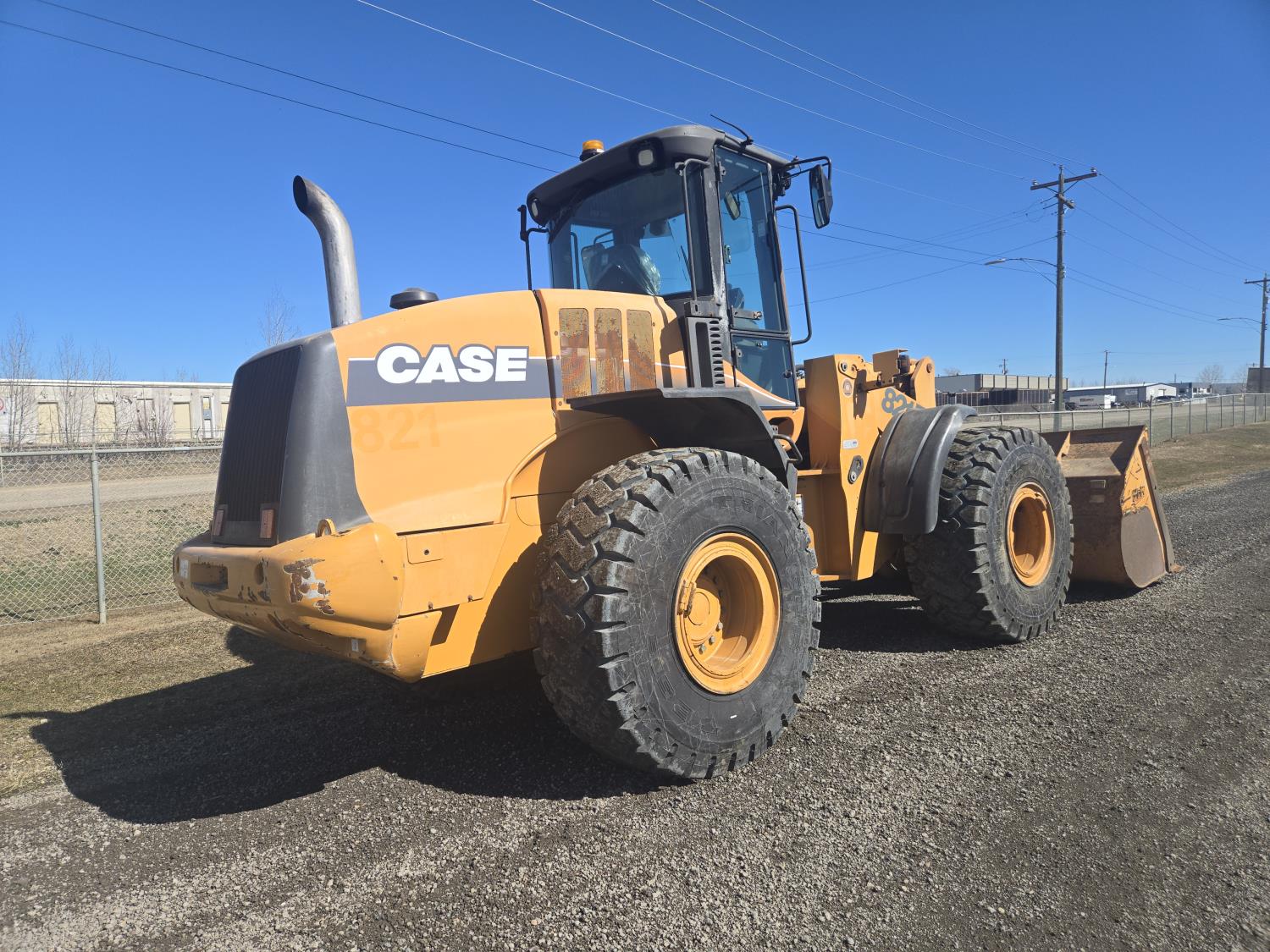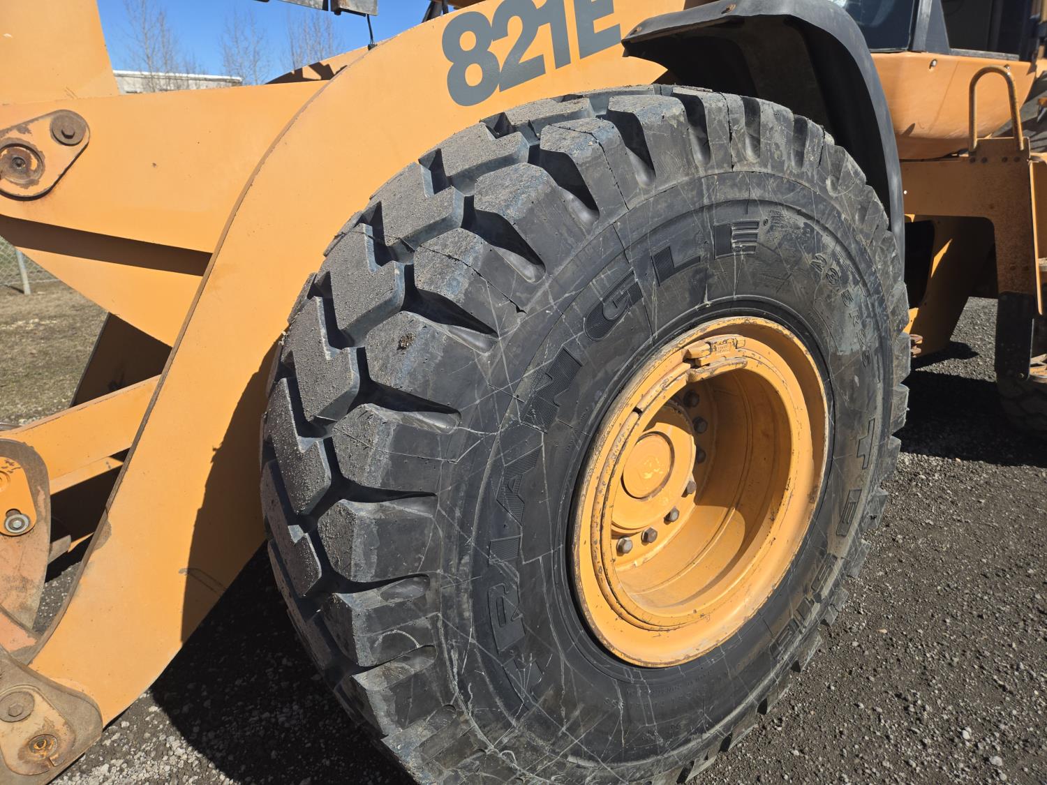 Enclosed cab, A/C, ride control, smooth bucket, hydraulic Q/C coupler, 4.5 Cu yard bucket, 3rd valve, 23.5R25 tires