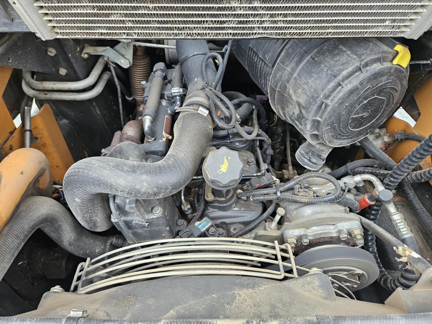 Enclosed cab, A/C, toothed bucket, hydraulic Q/C coupler, auxiliary hydraulics with case drain