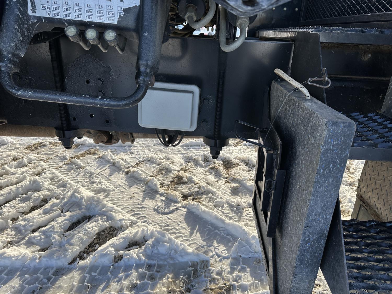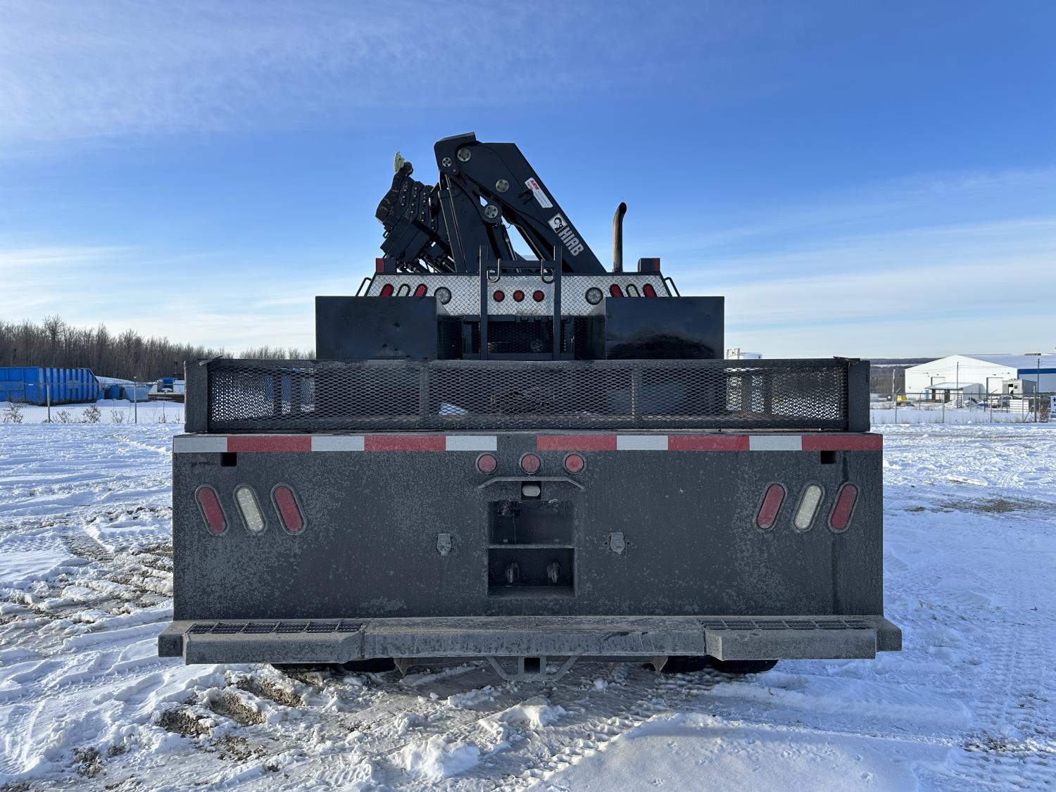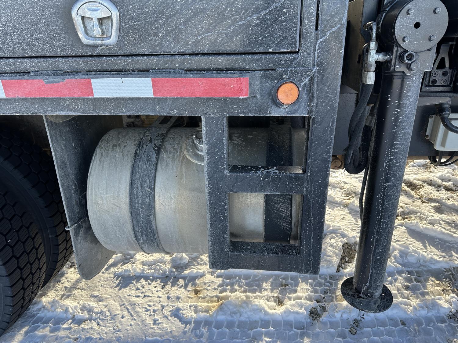 Cummins ISC8.3 350 8.3 L 6 cylinder 350 HP engine, DEF deleted, engine brake, positive air shutoff, Allison automatic transmission, has remote, A/C, cruise control, air ride driver seat, Hiab hydraulic wet kit, steel tool boxes, 8 ft x 9 ft 9 inch deck, air ride cab, saddle boxes, chain holders, Hiab 211 E P-5 6 section 50 ft knuckle rear mount crane, outriggers, air ride suspension, 14,600 lb front axle, 23,000 lb rear axles, diff lock, 253 inch WB, all aluminum wheels, 11R22.5 tires