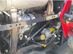 Massey Ferguson DL120 loader, 72 inch bucket, Iseki 1.5 L 3 cylinder 33 HP, diesel engine, 26 PTO HP, 8 speed manual transmission with creeper gear, open station platform, shuttle shift, rear differential lock, joystick, 540 PTO, 3 point hitch, rear wheel weights, 10-16.5 front tires, 14.9-24 rear tires