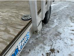 84 inch wide deck, wood deck, torsion suspension, ball hitch, loading ramps stored on side rails , 2200 lb axles, 205/65-10 tires