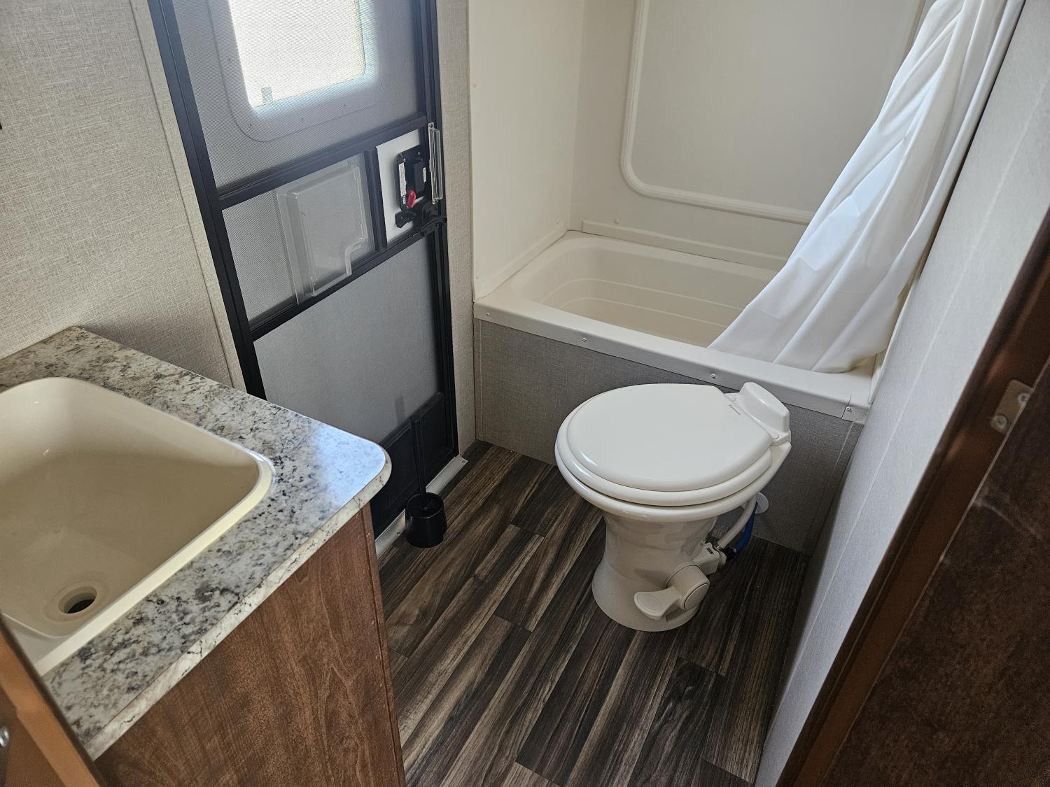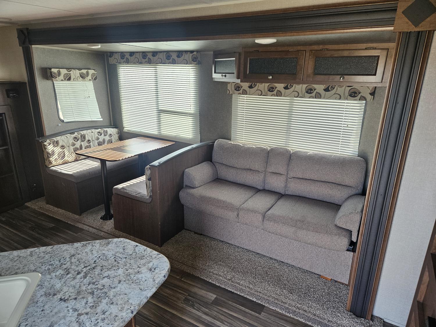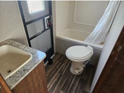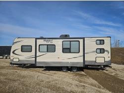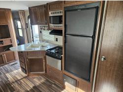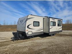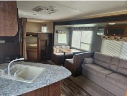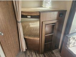 stove, fridge, microwave, full bath, bunk beds, A/C, 1 slide, power awning, spring suspension, electric brakes, propane tanks, power slide, storage compartments, 2 door