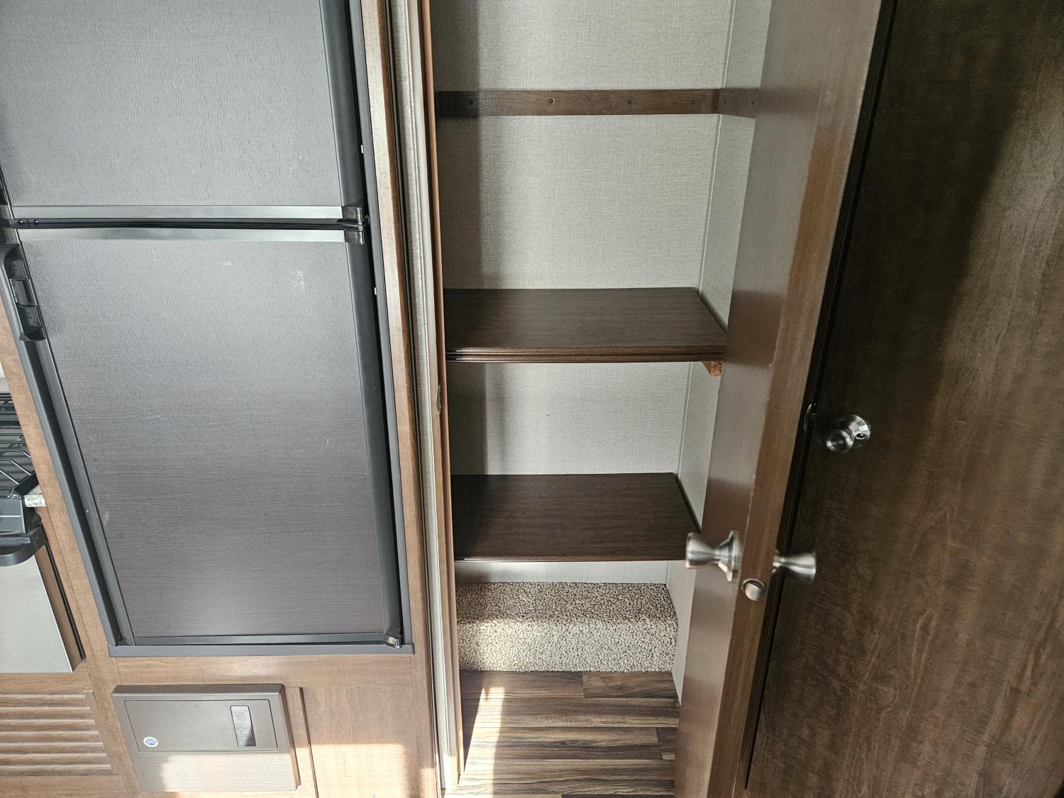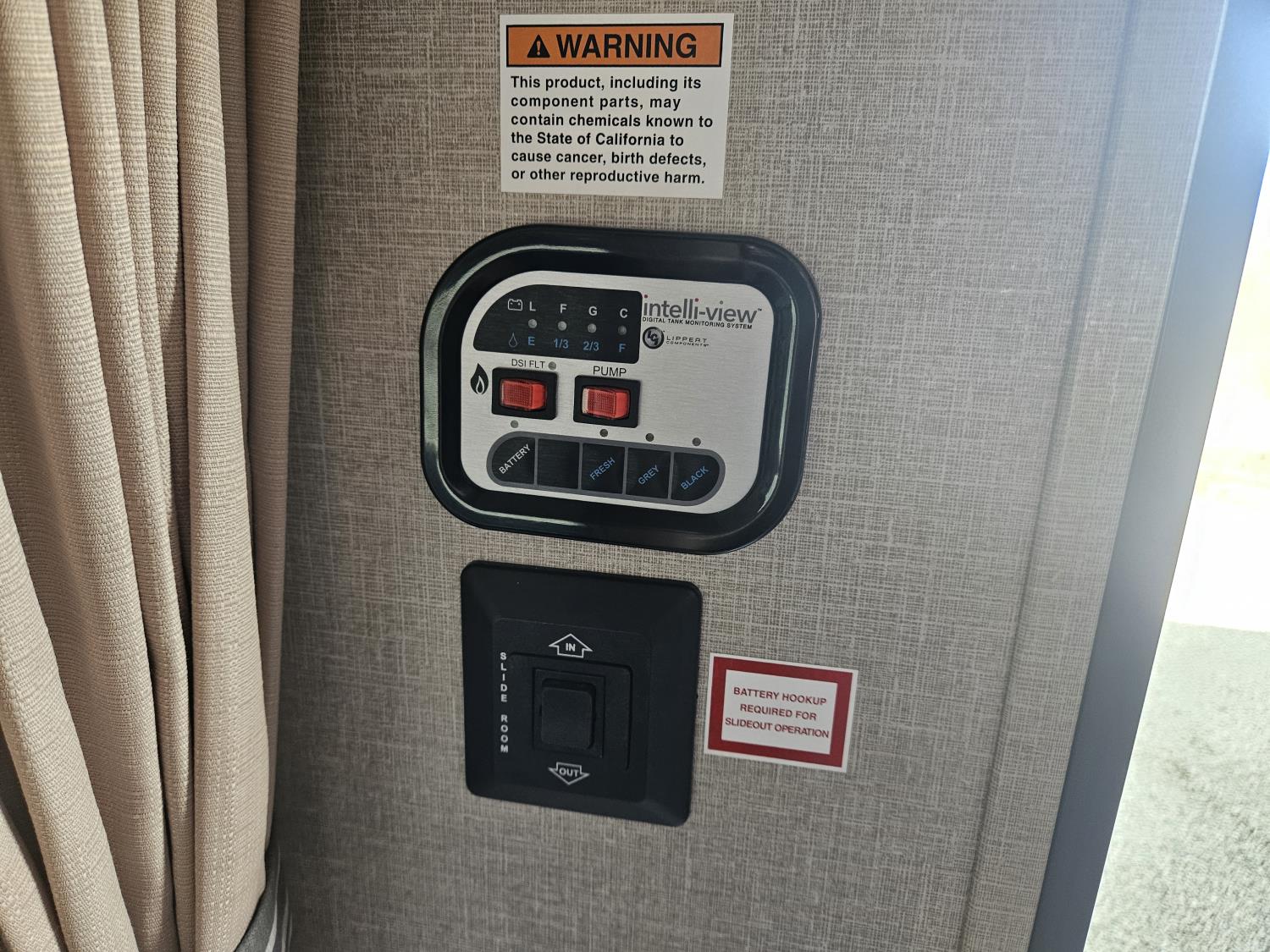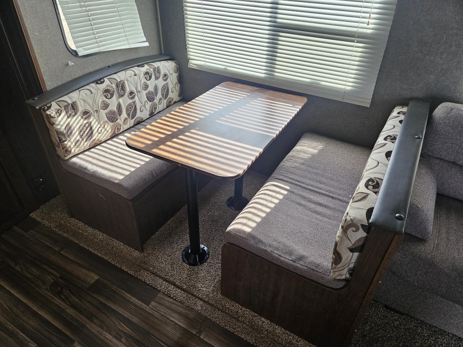 stove, fridge, microwave, full bath, bunk beds, A/C, 1 slide, power awning, spring suspension, electric brakes, propane tanks, power slide, storage compartments, 2 door