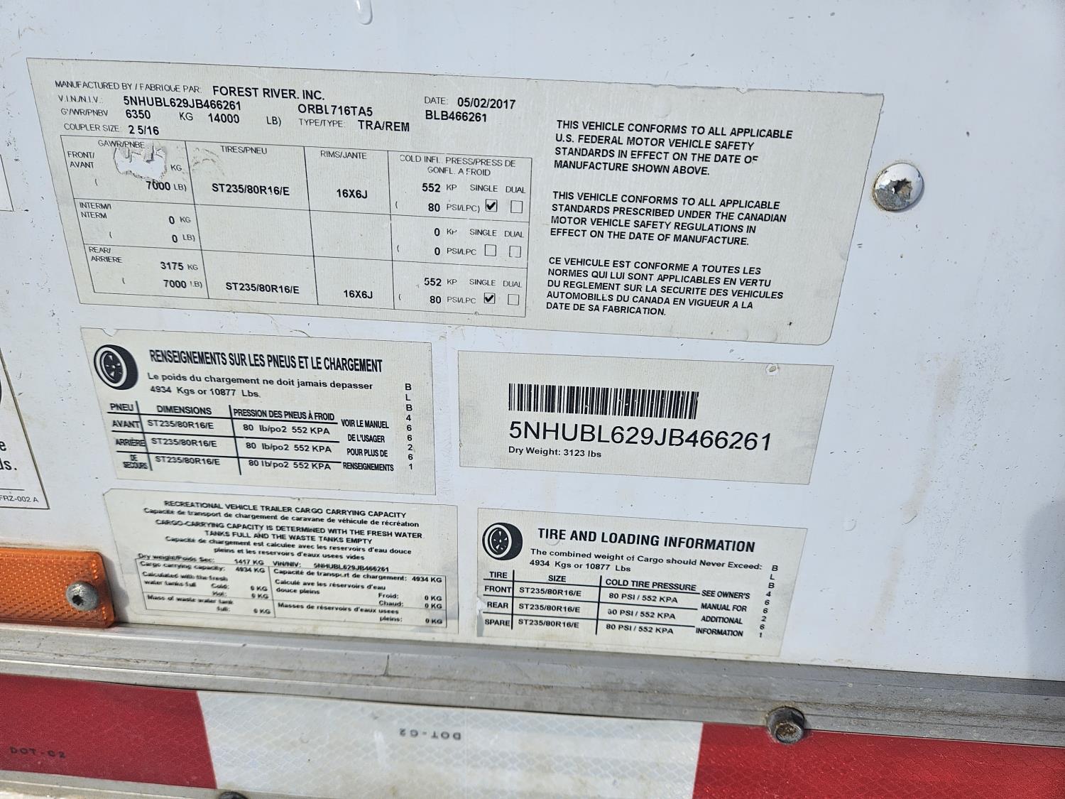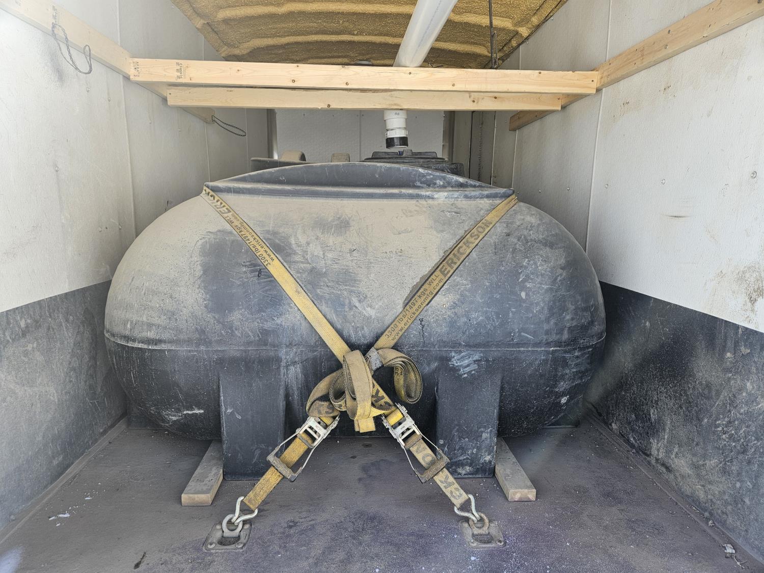 82 inch interior width, 83 inch interior height, ball hitch, side door, fold down door, electric brakes, spring suspension, 950 IMP gallon poly tank, 2" water pump, 7000 lb axles, 235/85R16 tires