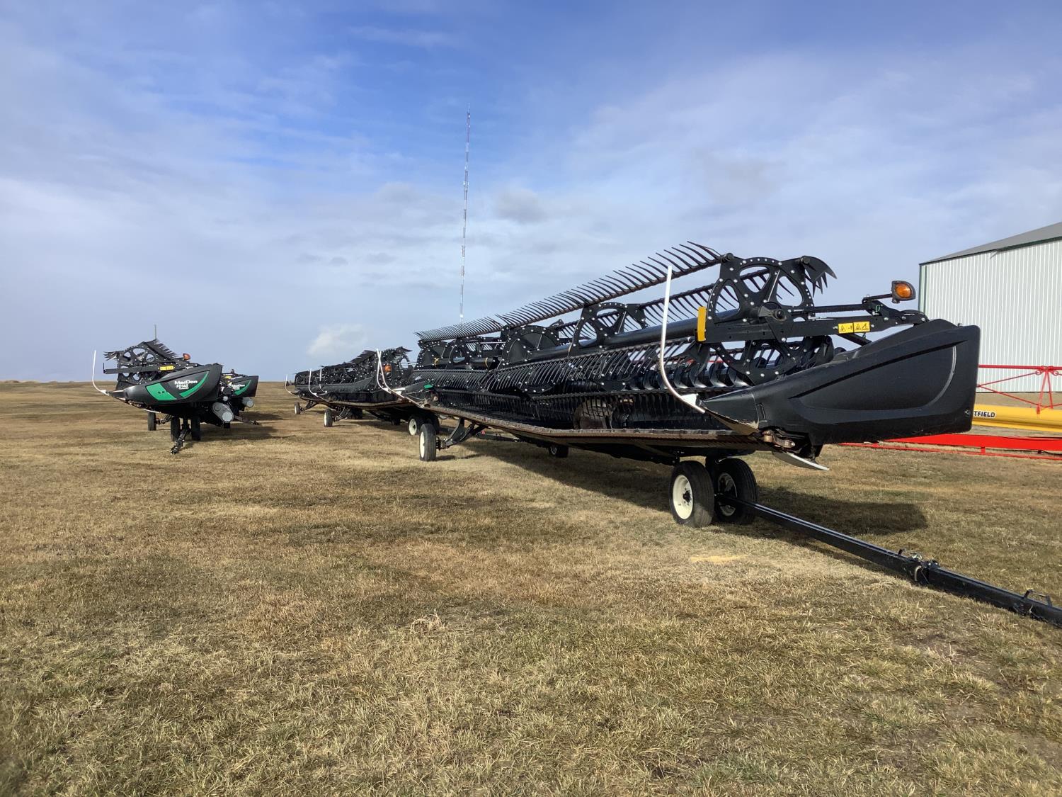These headers are from Metzger Farms from Carbon, AB. They have purchased new headers and are offering these headers for sale. All are in good overall condition and have been kept inside most of the time. There is no rush to pick them up and if you need delivery anywhere call Hastie Hauling at 403-588-7926.
