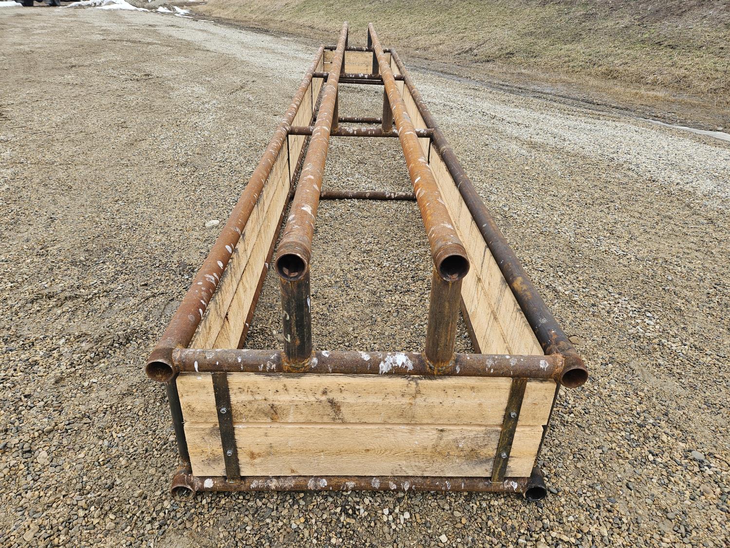 39 inch wide, 23 inch tall, 2-7/8 inch and 2-3/8 inch steel pipe construction, lifting bars, wood exterior