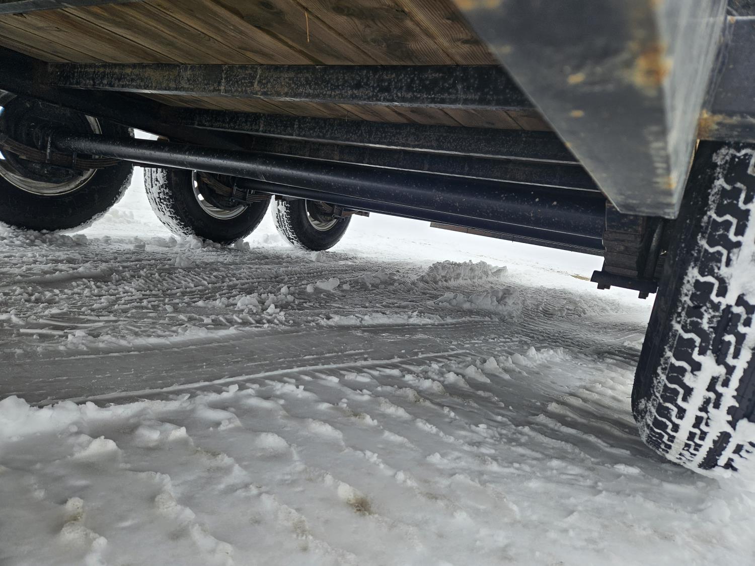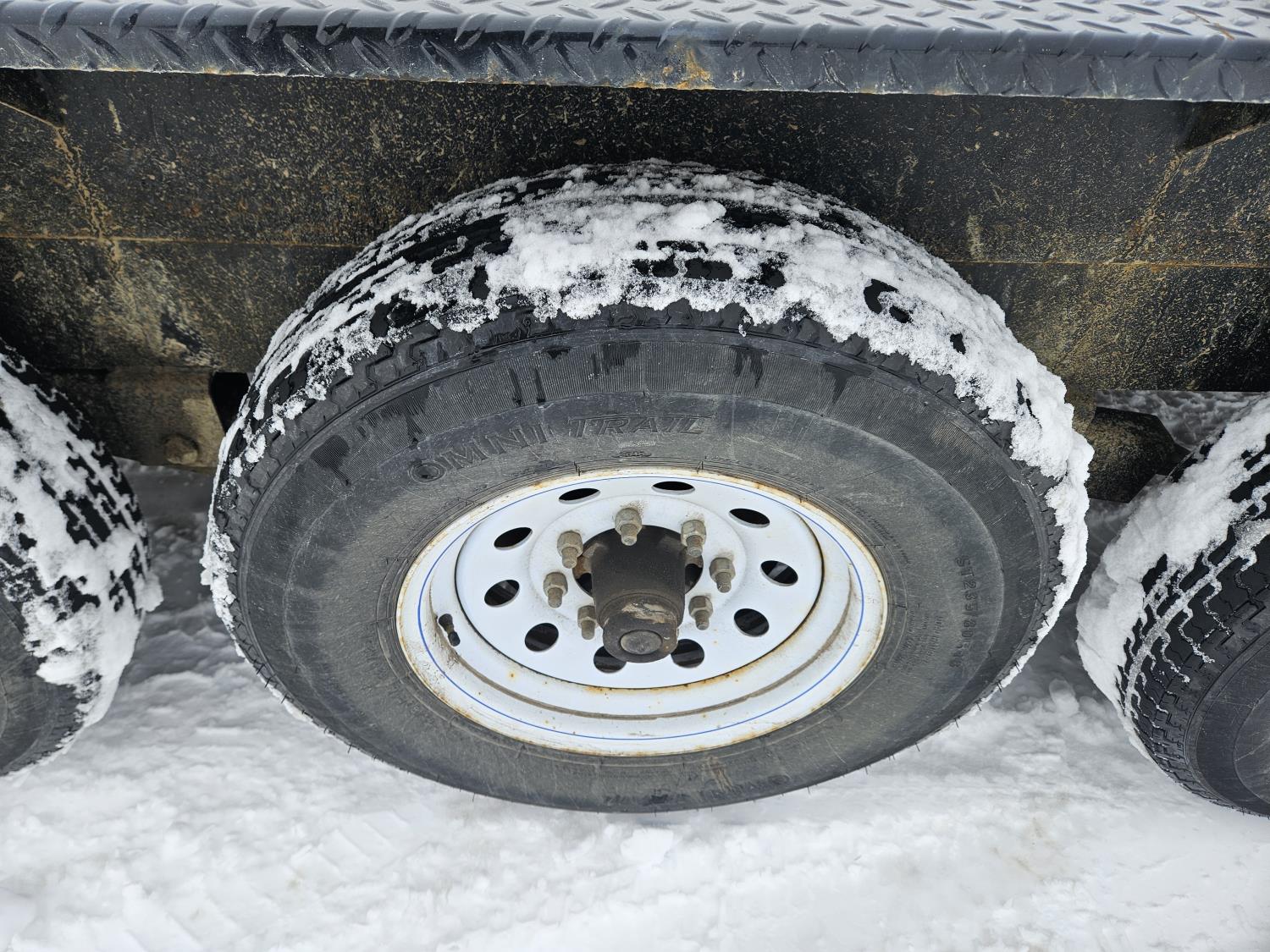 82 inch wide deck, wood deck, stand up ramps, electric brakes, spring suspension, ball hitch, stake pockets, 7000 lb axles, 235/80R16 tires