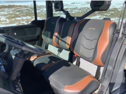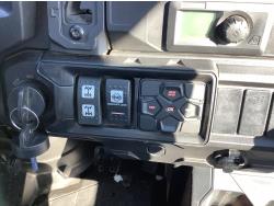 974 cc fuel injected engine, CVT transmission, Hi/Lo range, reverse, 2 door enclosed cab, 3 passengers, A/C, heater, windshield, front locking differential, rear locking differential, front brush guard, manual dump box, receiver hitch, independent suspension, V-twin, liquid cooled, front 4500lb winch, aluminum wheels, 30X9.00R14 front tires, 30X10.00R14 rear tires