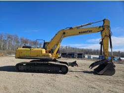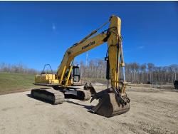 Enclosed cab, A/C, 6 cylinder diesel engine, 60 inch smooth bucket, manual coupler, hydraulic thumb, 10 Ft stick, c/w 39" dig bucket, 68" brush rake, 28 inch track pads, triple grousers