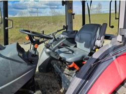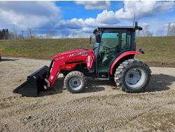 Massey Ferguson DL130 loader, Q/A, 72 inch bucket, Iseki 3.0 L 4 cylinder 52 HP, diesel engine, 12 speed hydro 3 range transmission, cab, shuttle shift, joystick, A/C, radio, 540 PTO, 3 point hitch, 2 rear hydraulic outlets, 10-16.5 front tires, 17.5L-24 rear tires, c/w 7ft MF 1550 belly mount blade